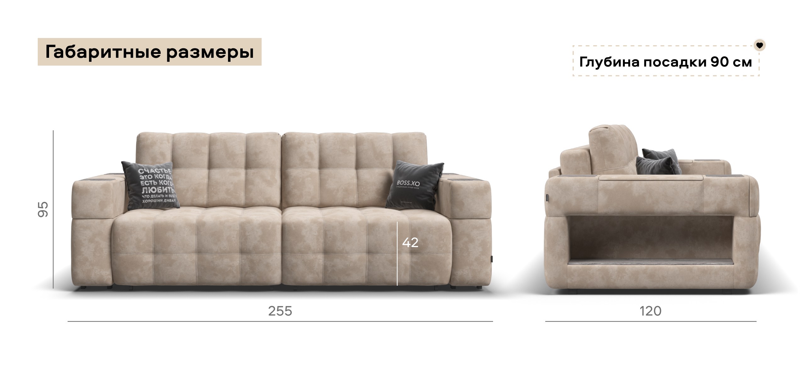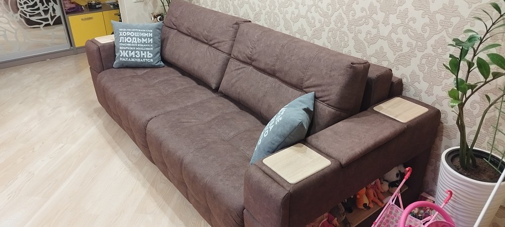 Покупая диван BOSS.XO вы становитесь обладателем уникальных подарков: быстрая зарядка для смартфона, 2 стильных кружки, 2 удобных столика для ноутбука, 2 подушки, комплект запасных накладок на подлокотники, Фул экоручки и средство для чистки Босс Клин.Преимущества материала