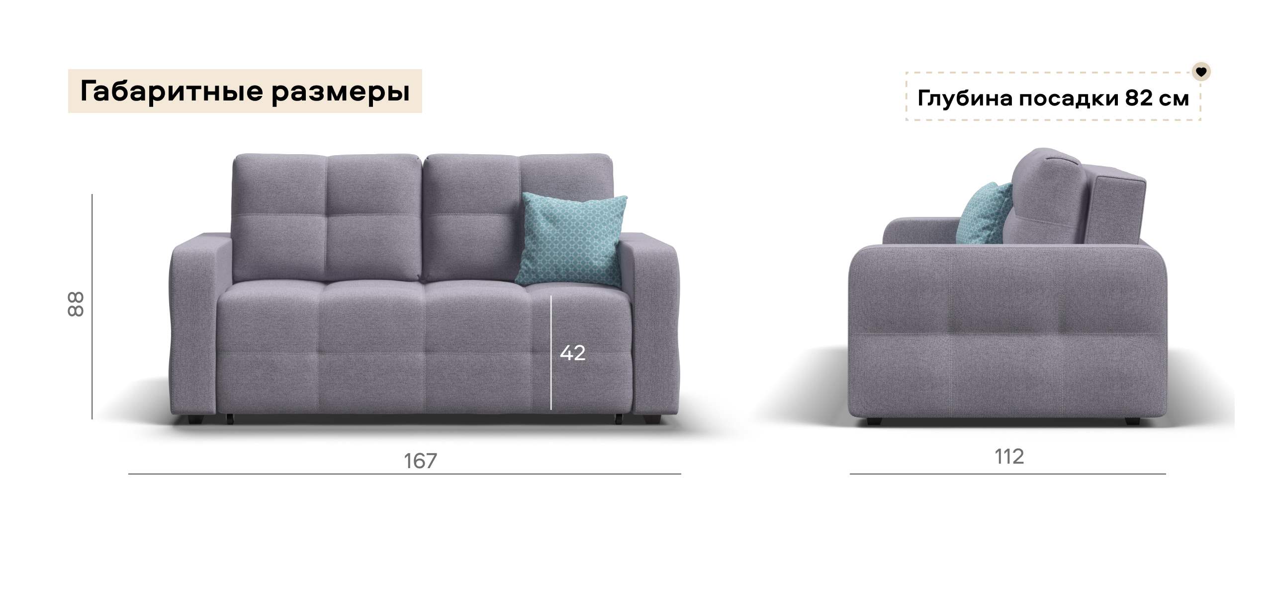Небольшой размер дивана сочетается с оптимальным спальным местом, на котором могут с комфортом разместиться 2 человека.