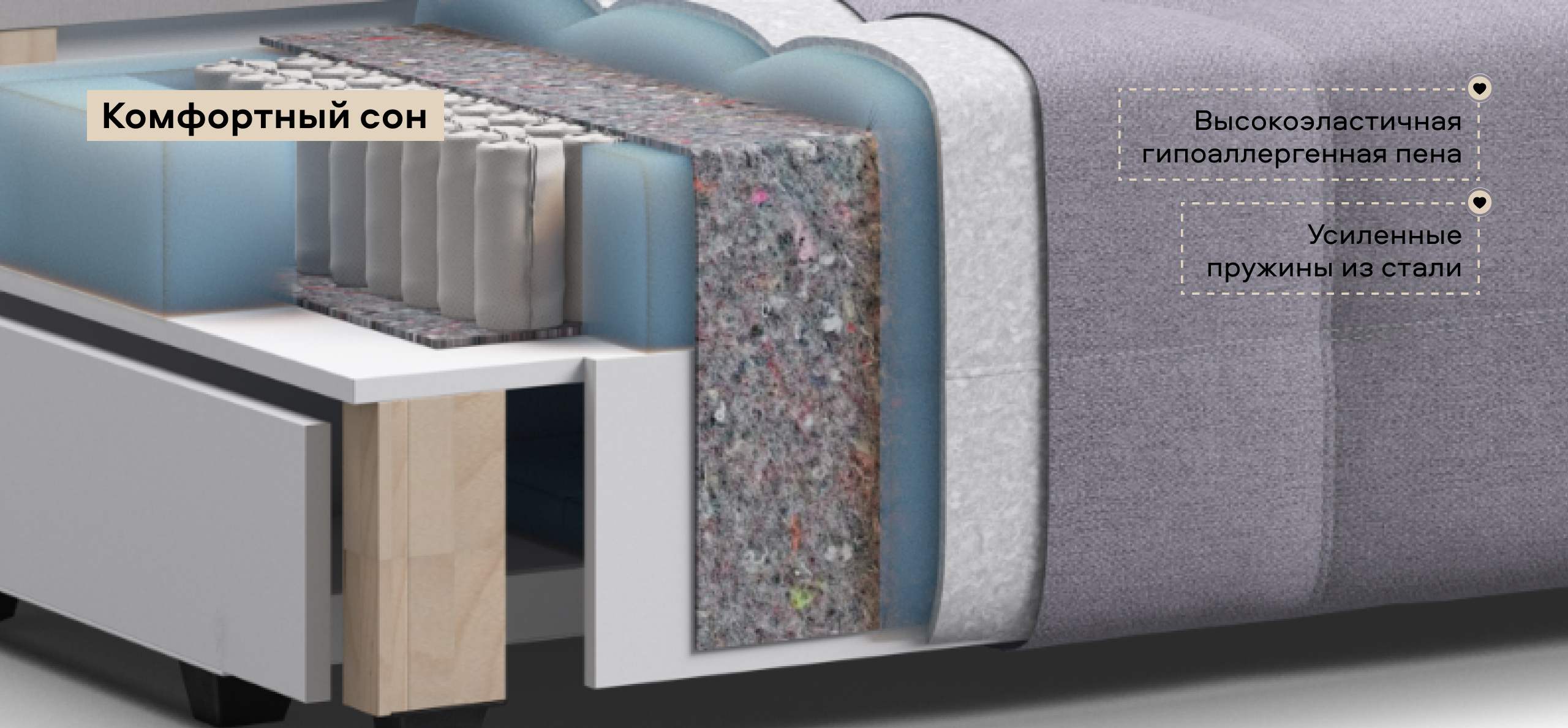 Благодаря строгому и лаконичному образу диван Денди Мини будет уместен в любом интерьере. Удобный механизм трансформации позволяет с легкостью раскладывать диван в удобную, полноценную, двуспальную кровать.