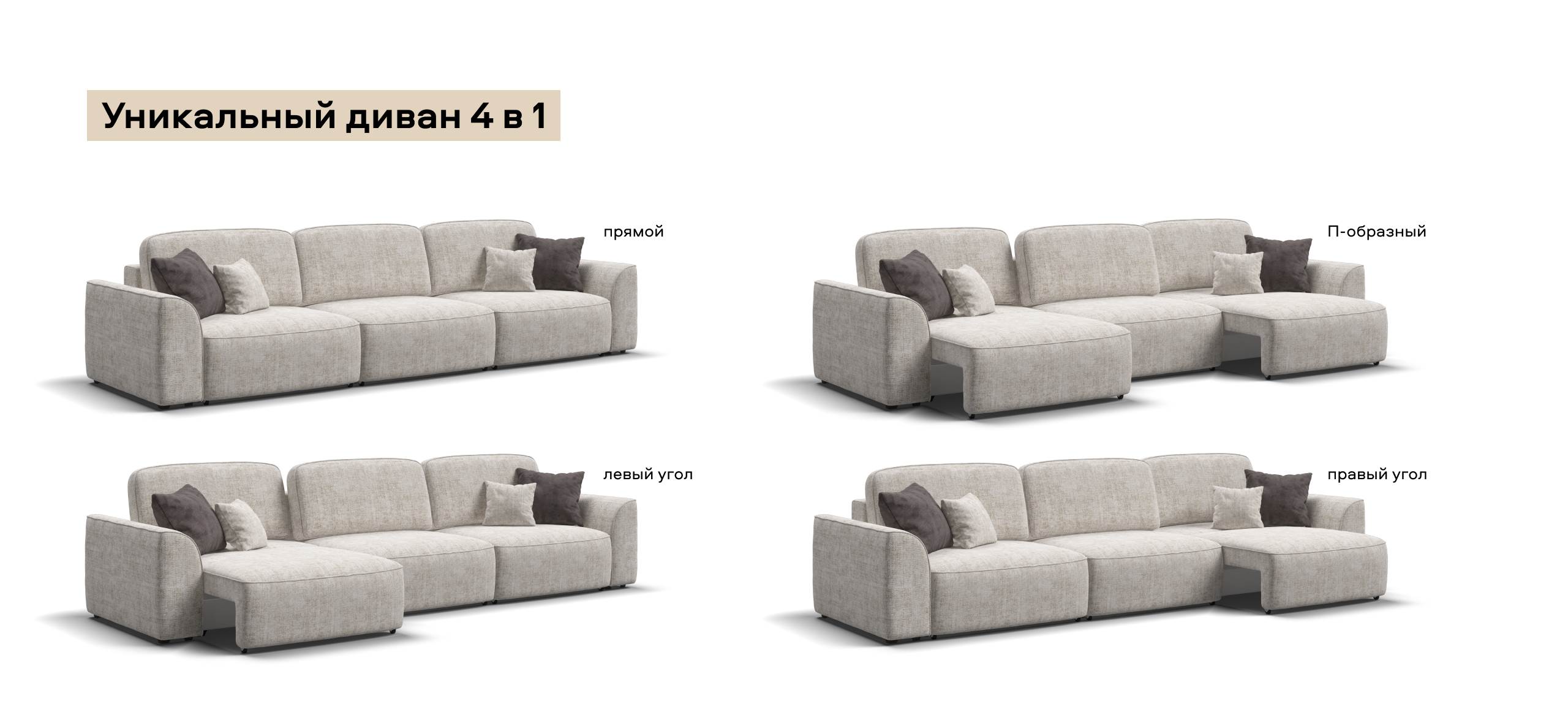 Приглашайте в гости большую компанию - диван вместит всех! Каждое посадочное место можно выдвинуть вперед и получить диван с правым или левым углом, а также получить П-образную форму дивана. А в разложенном виде диван превращается в огромное спальное место.