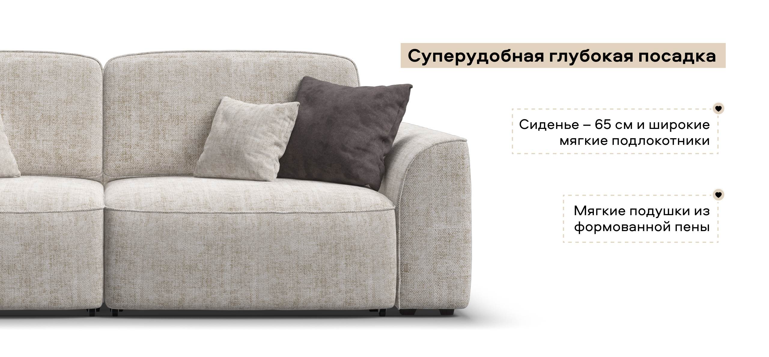 Комфортная посадка, скругленные линии, объемные подушки - диван, который наполнит ваш дом уютом и комфортом. Каждое посадочное место можно выдвинуть вперед и получить угловой диван, на котором с комфортом разместится небольшая компания. А в разложенном виде диван превращается в комфортное спальное место.