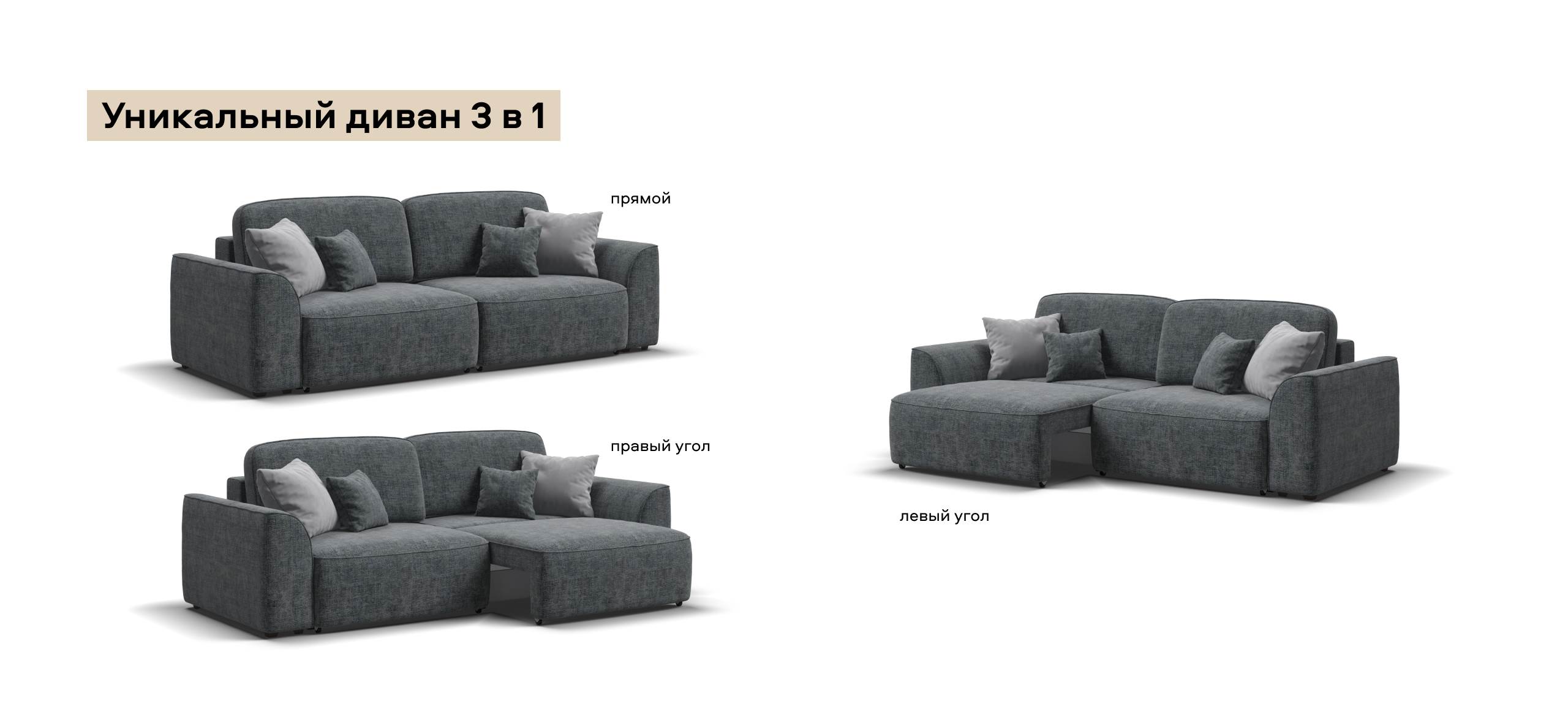 Комфортная посадка, скругленные линии, объемные подушки - диван, который наполнит ваш дом уютом и комфортом. Каждое посадочное место можно выдвинуть вперед и получить угловой диван, на котором с комфортом разместится небольшая компания. А в разложенном виде диван превращается в комфортное спальное место.