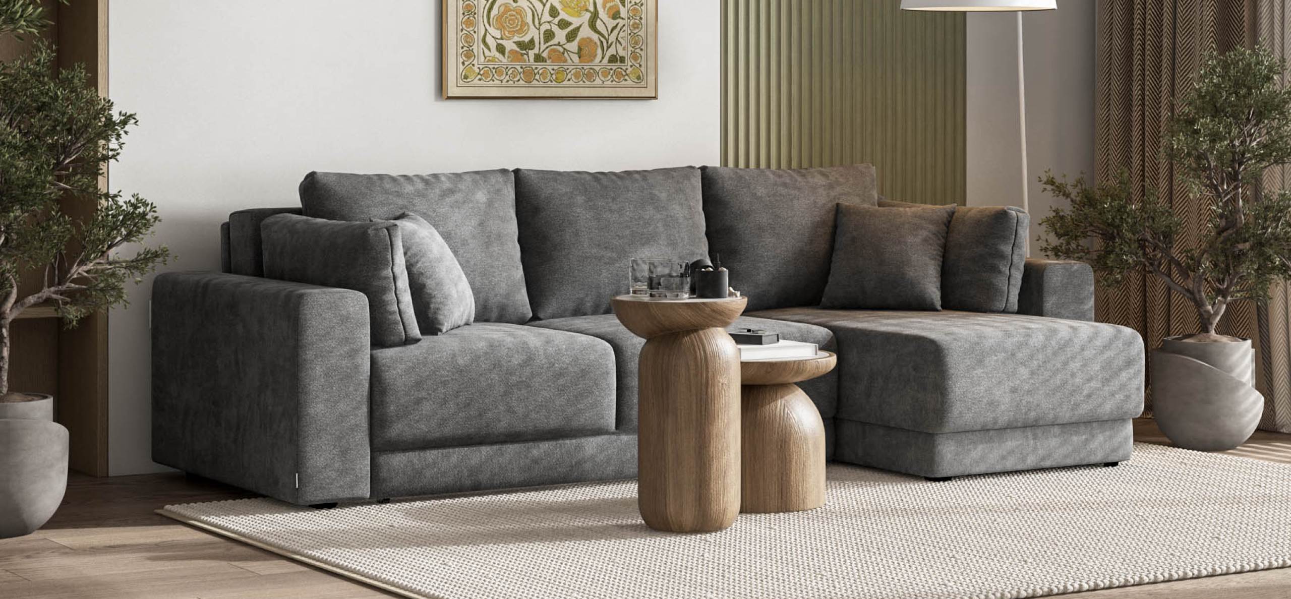Угловой диван Босс Прайм ХЛ - это сочетание современного дизайна и продуманной эргономики, создающее уютную атмосферу в любом интерьере. Визуально разделённое сиденье, широкие мягкие подлокотники и пышные подушки разного размера обеспечивают не только эстетическую привлекательность, но и максимальный комфорт.​