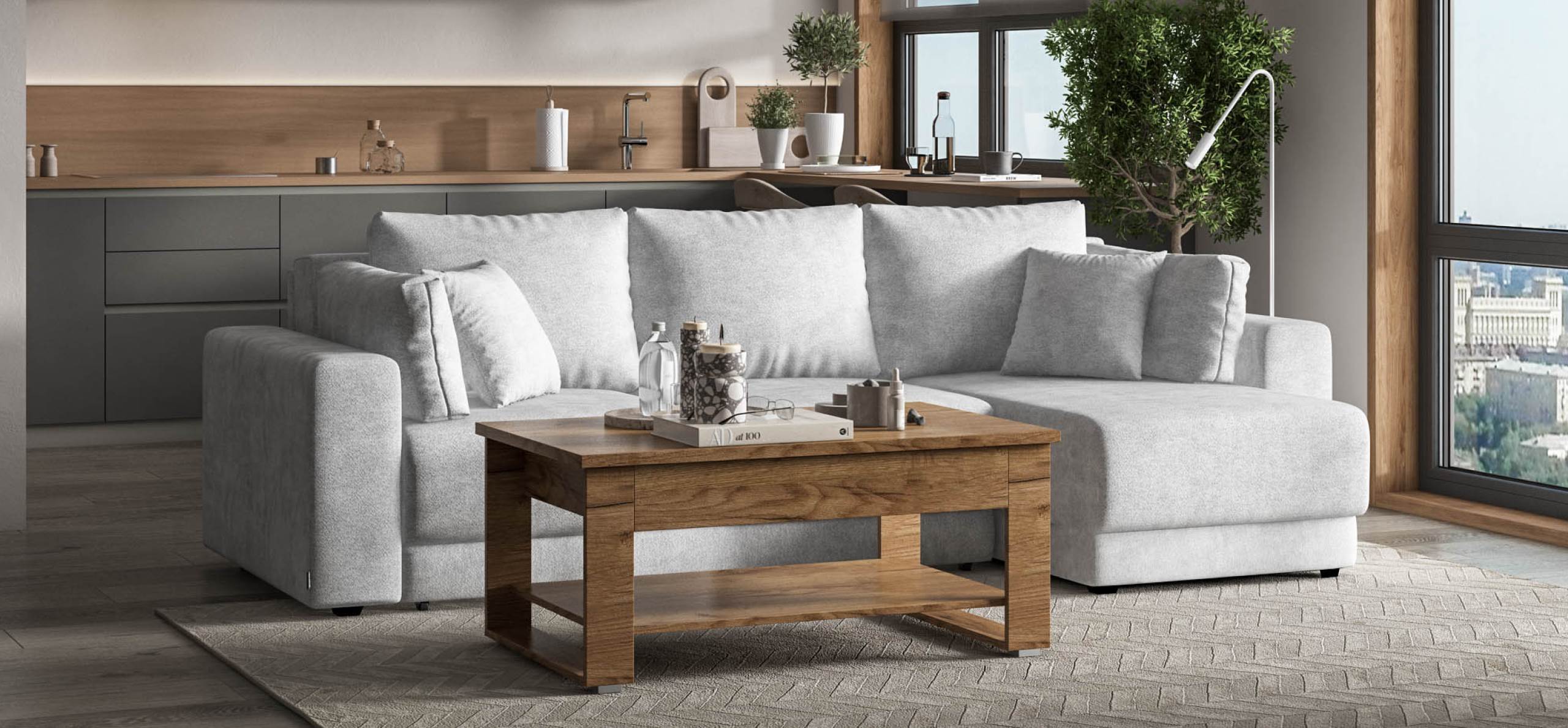 Простой и надежный механизм еврокнижка позволяет ставить диван вплотную к стене