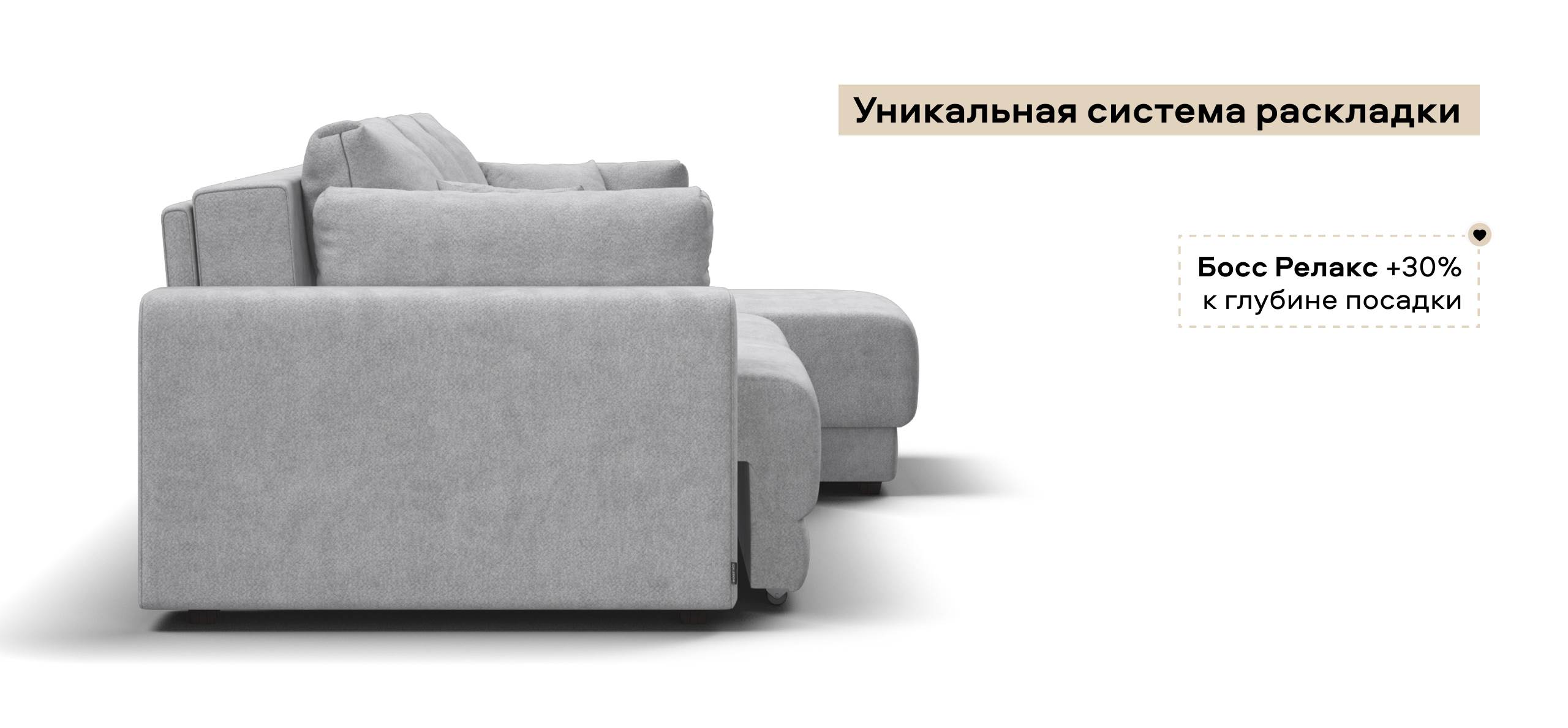 Угловой диван Босс Прайм ХЛ Шенилл Клауд серый