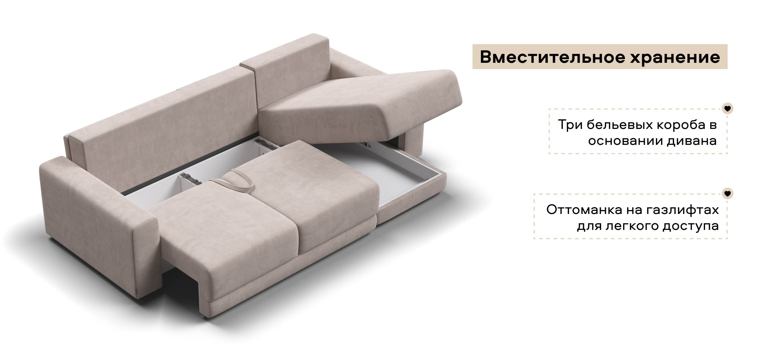 Оснащённый независимым пружинным блоком и высокоэластичной пеной Эластик Фоам с дополнительным слоем периотека, диван гарантирует анатомическую поддержку и комфортный сон. Простой и надёжный механизм трансформации «еврокнижка» позволяет легко преобразовать диван в просторное спальное место. Универсальный угол позволит Вам переставить оттоманку и поменять положение угла при необходимости.