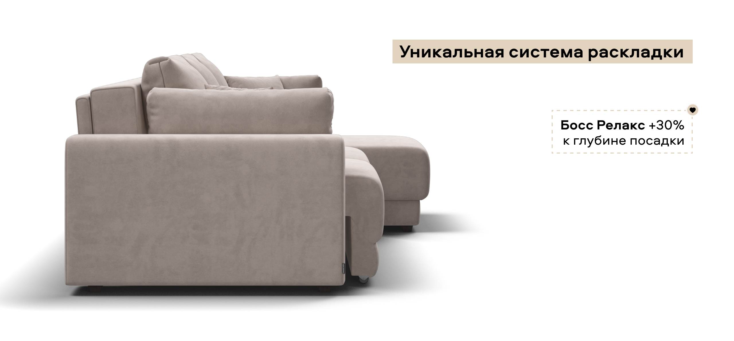 Угловой диван Босс Прайм ХЛ велюр Монолит латте