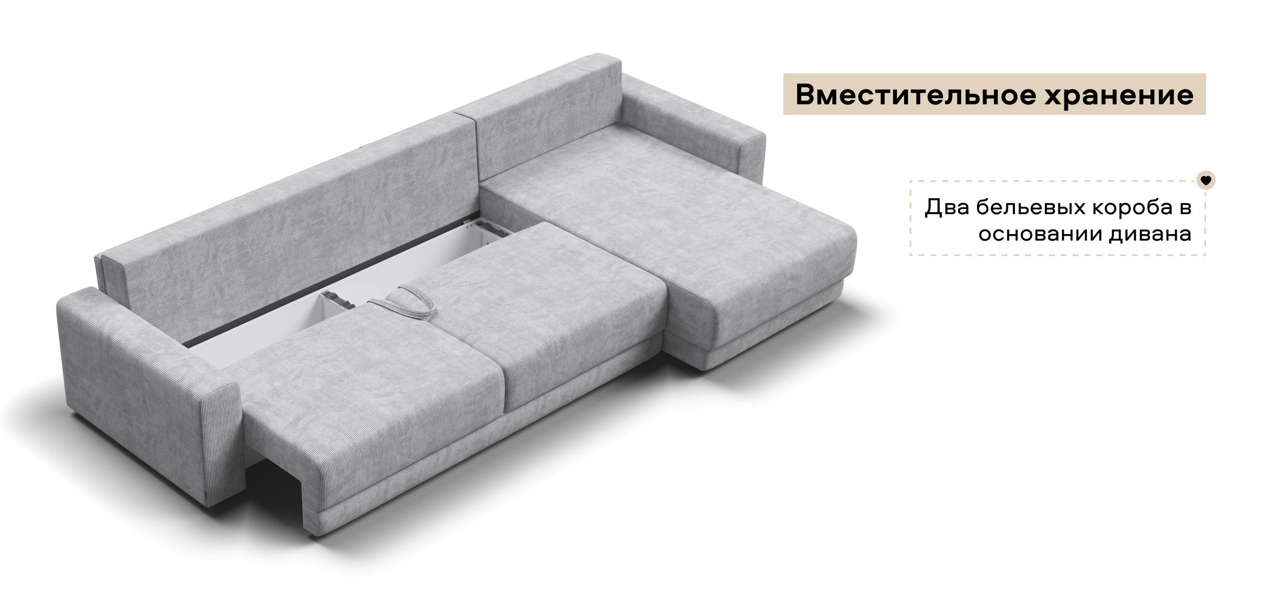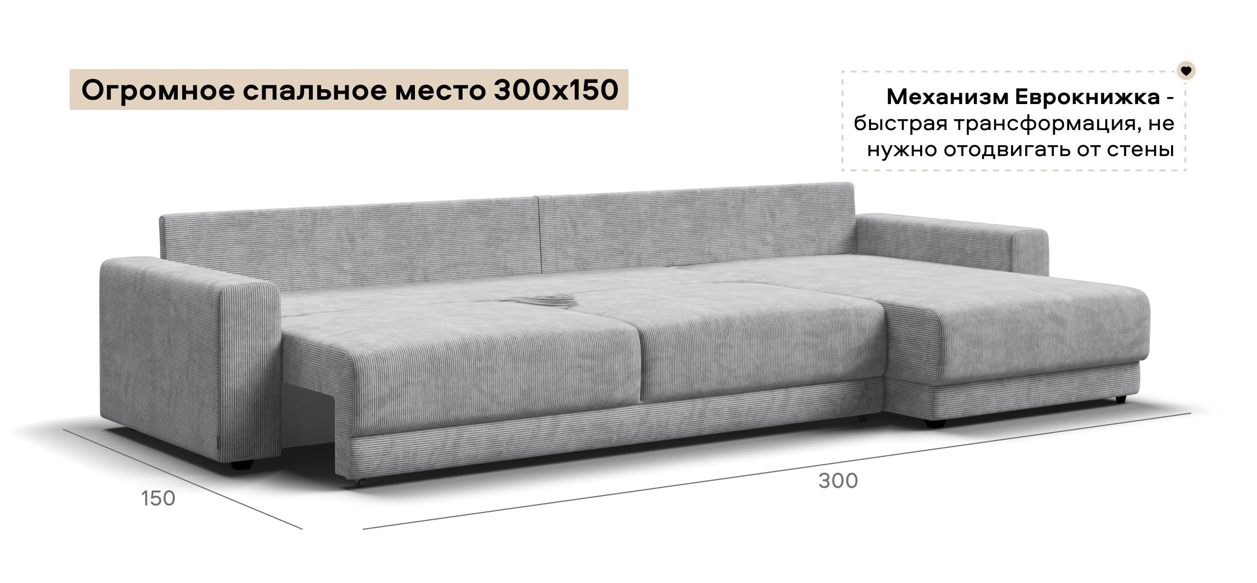 Оснащённый независимым пружинным блоком и высокоэластичной пеной Эластик Фоам с дополнительным слоем периотека, диван гарантирует анатомическую поддержку и комфортный сон. Простой и надёжный механизм трансформации «еврокнижка» позволяет легко преобразовать диван в просторное спальное место.​ Универсальный угол позволит Вам переставить оттоманку и поменять положение угла при необходимости.