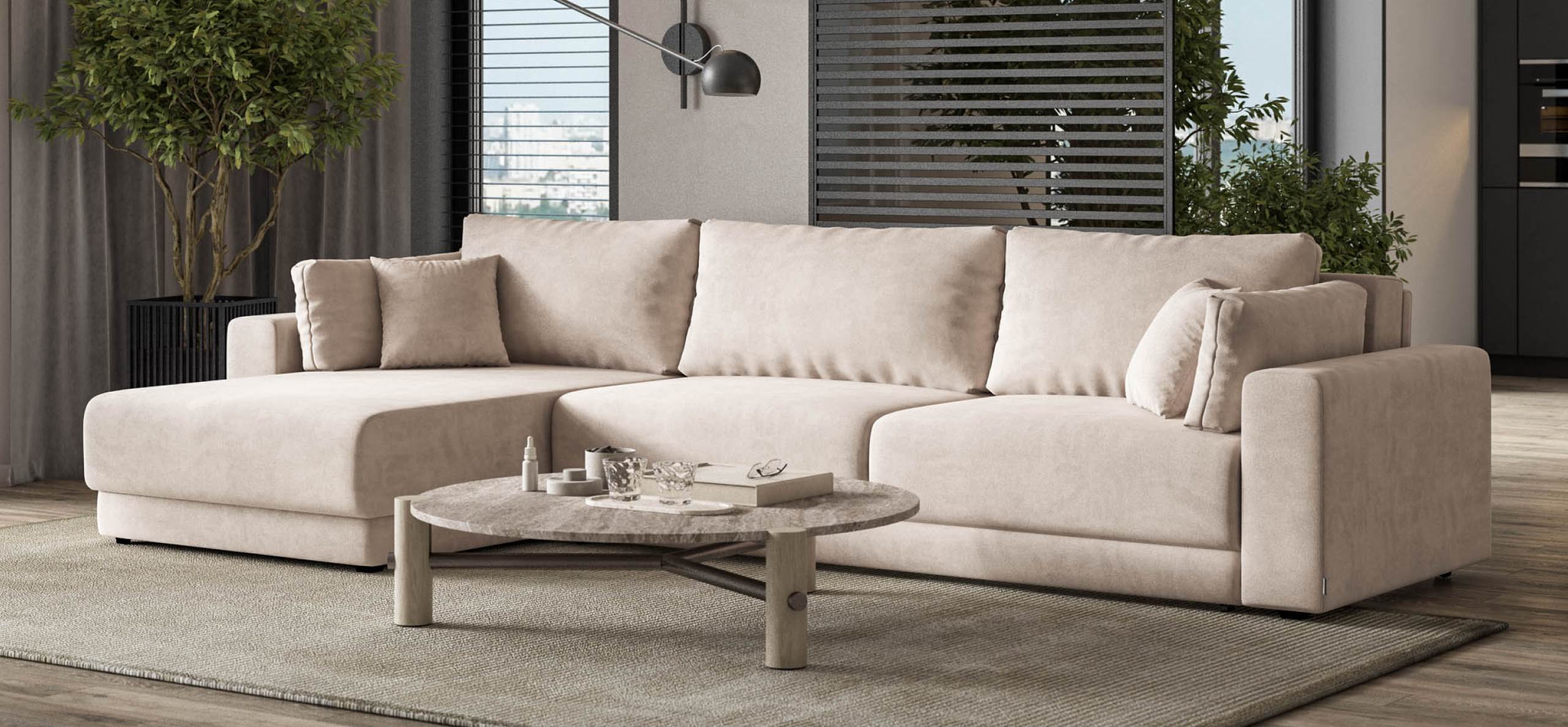 Угловой диван Босс Прайм Макс - это сочетание современного дизайна и продуманной эргономики, создающее уютную атмосферу в любом интерьере. Визуально разделённое сиденье, широкие мягкие подлокотники и пышные подушки разного размера обеспечивают не только эстетическую привлекательность, но и максимальный комфорт.