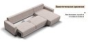 Оснащённый независимым пружинным блоком и высокоэластичной пеной Эластик Фоам с дополнительным слоем периотека, диван гарантирует анатомическую поддержку и комфортный сон. Простой и надёжный механизм трансформации «еврокнижка» позволяет легко преобразовать диван в просторное спальное место. Универсальный угол позволит Вам переставить оттоманку и поменять положение угла при необходимости.
