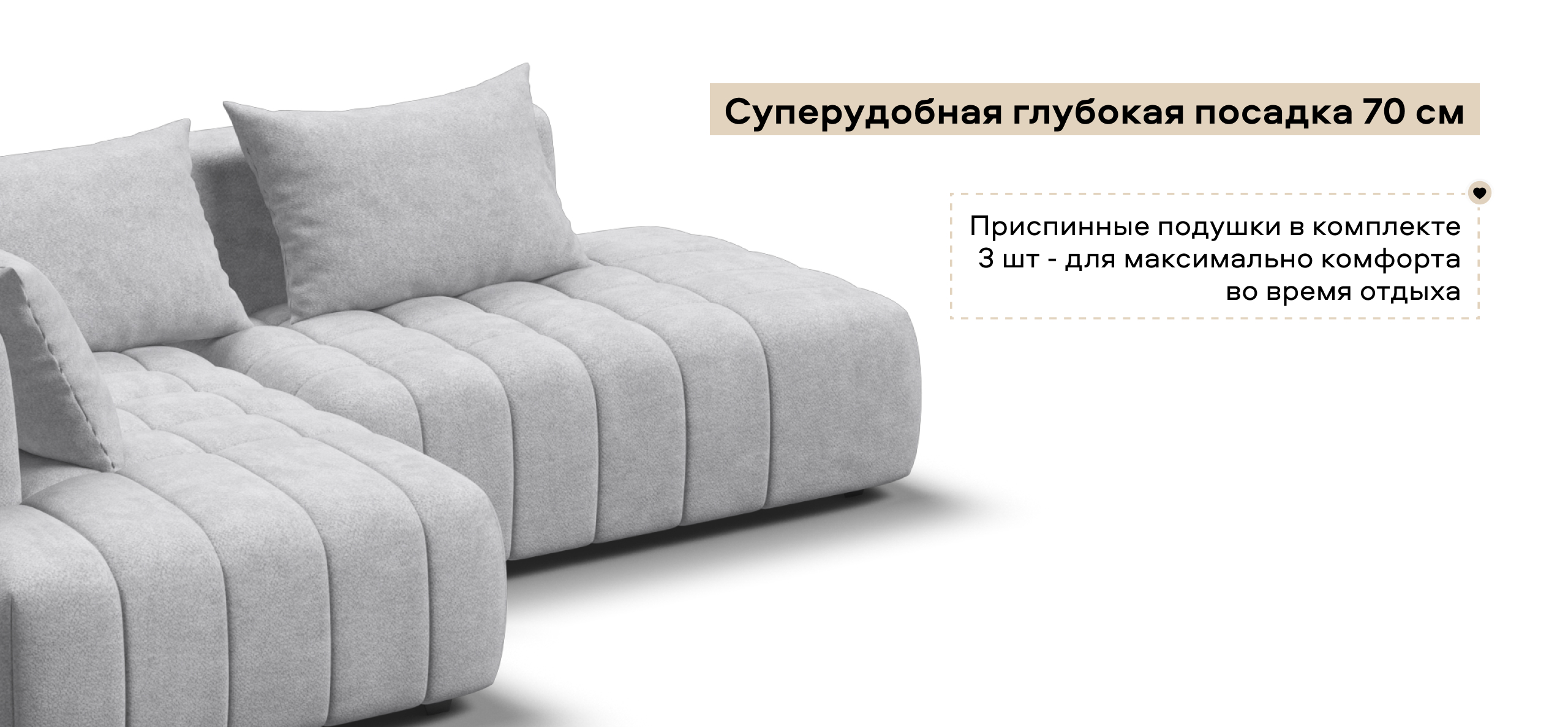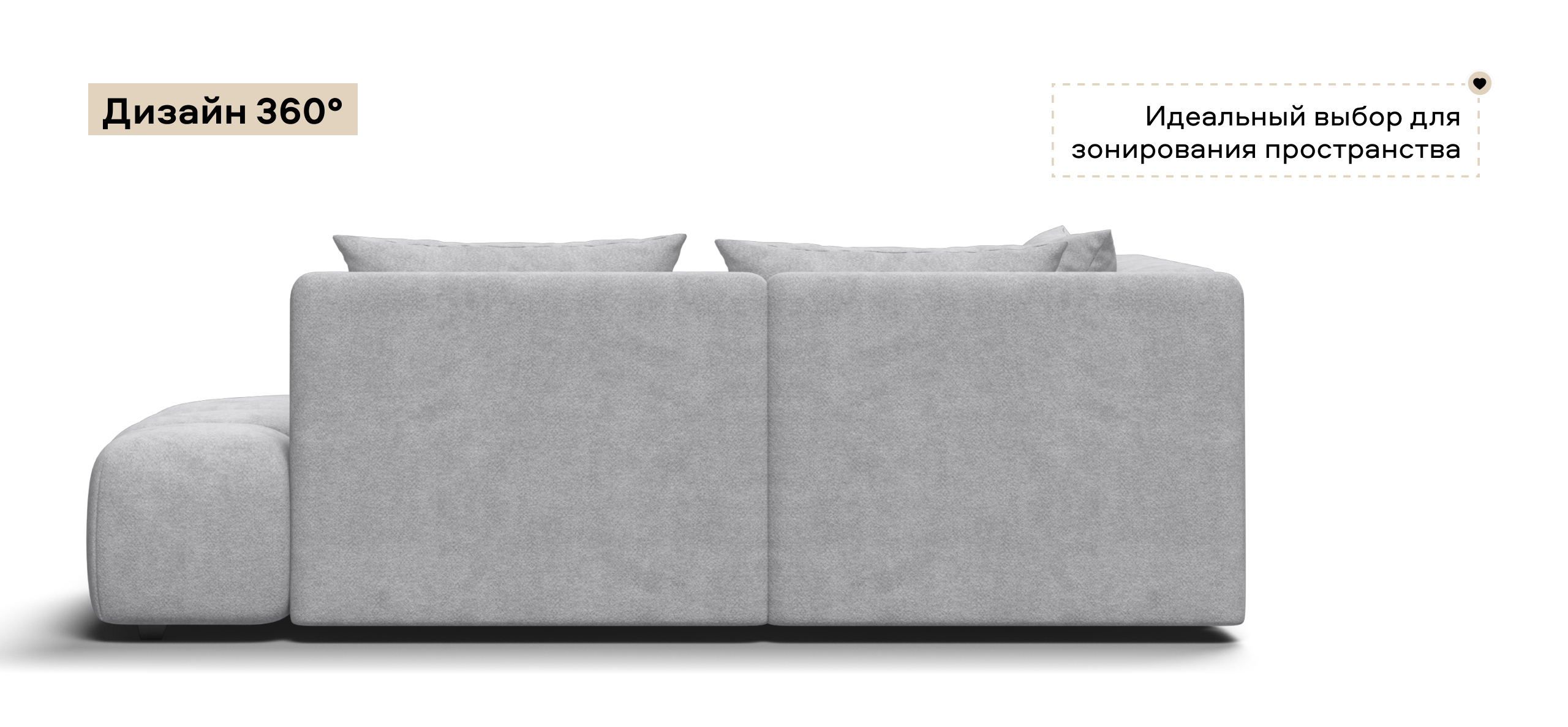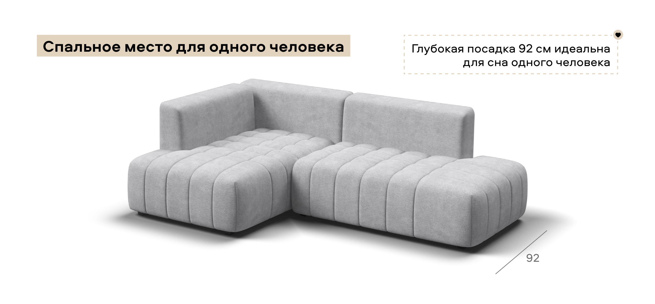 Благодаря инновационной системе креплений и быстросъёмным элементам Вы с лёгкостью можете поменять конфигурацию и адаптировать диван под новое пространство.