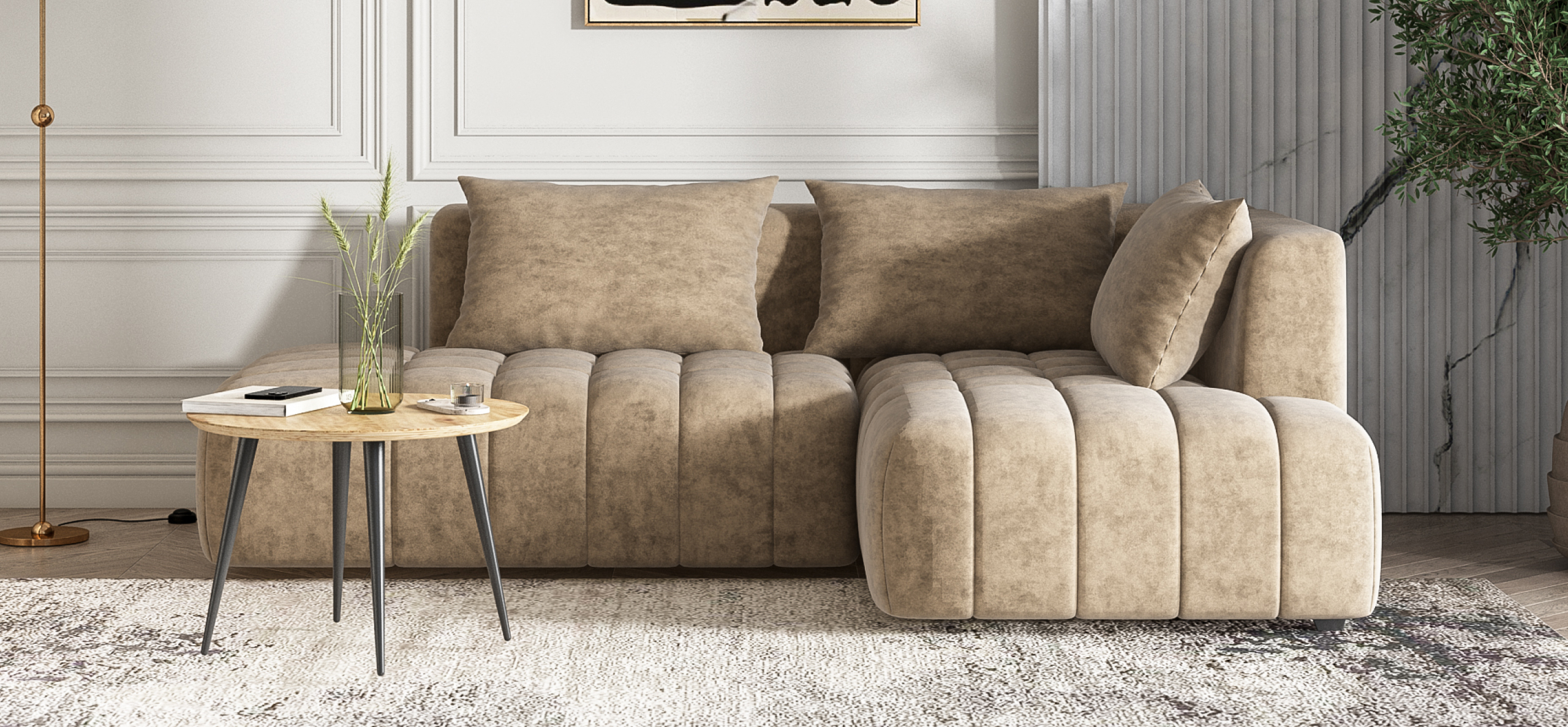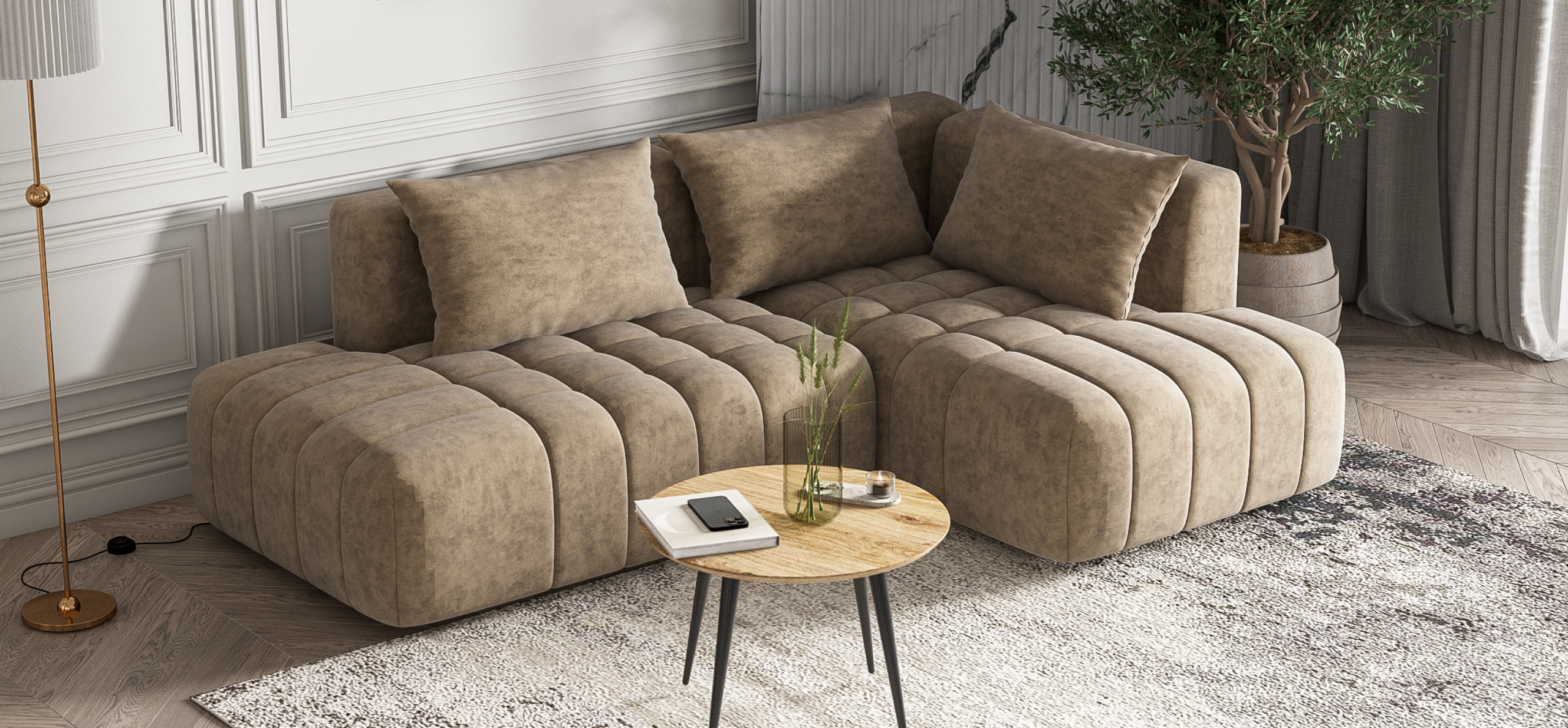 Угловой диван правый Босс Твин велюр Роял тауп