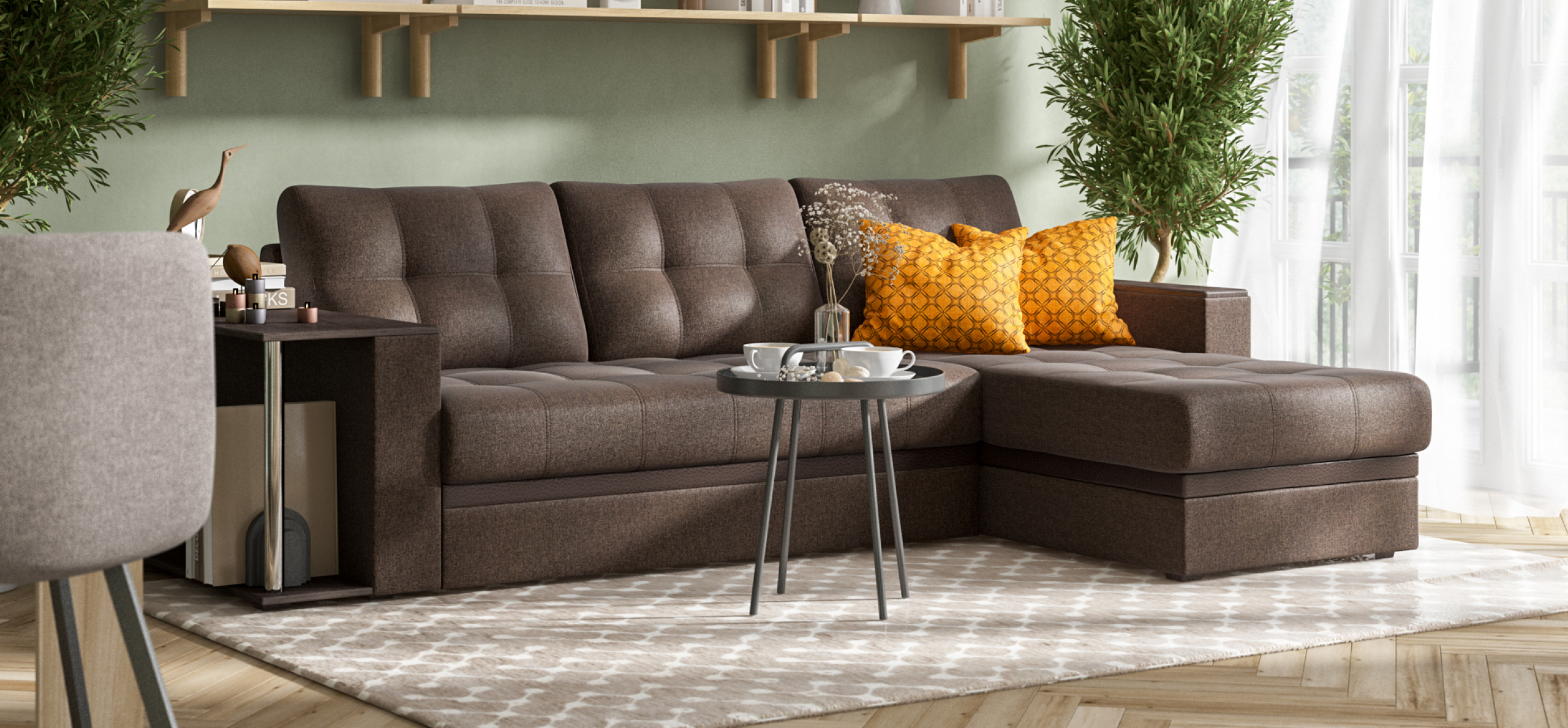 Угловой диван Атланта НПБ Рогожка Мальмо шоколад