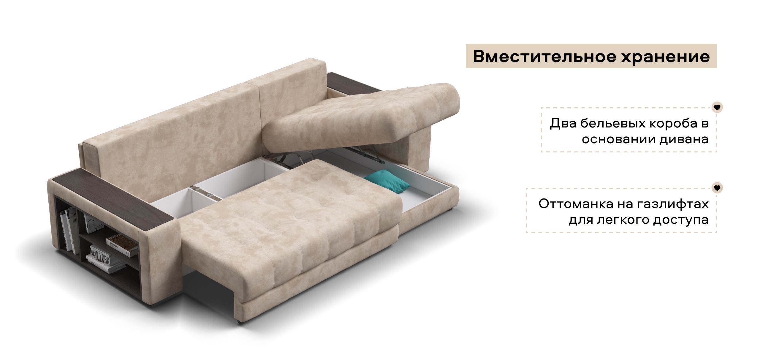 Угловой диван Босс ХЛ - диван с подъемной оттоманкой и механизмом Еврокнижка.