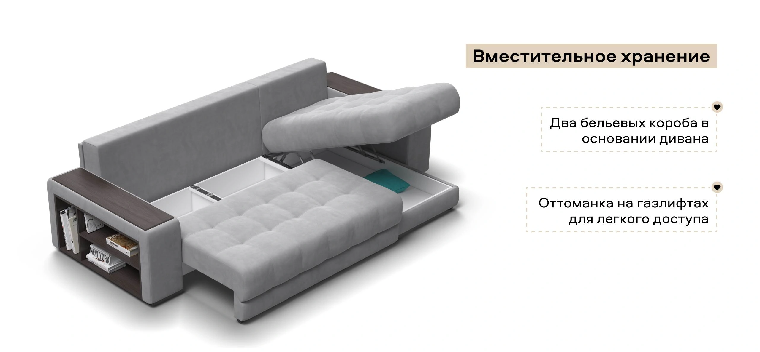 Угловой диван Босс ХЛ - диван с подъемной оттоманкой и механизмом Еврокнижка.