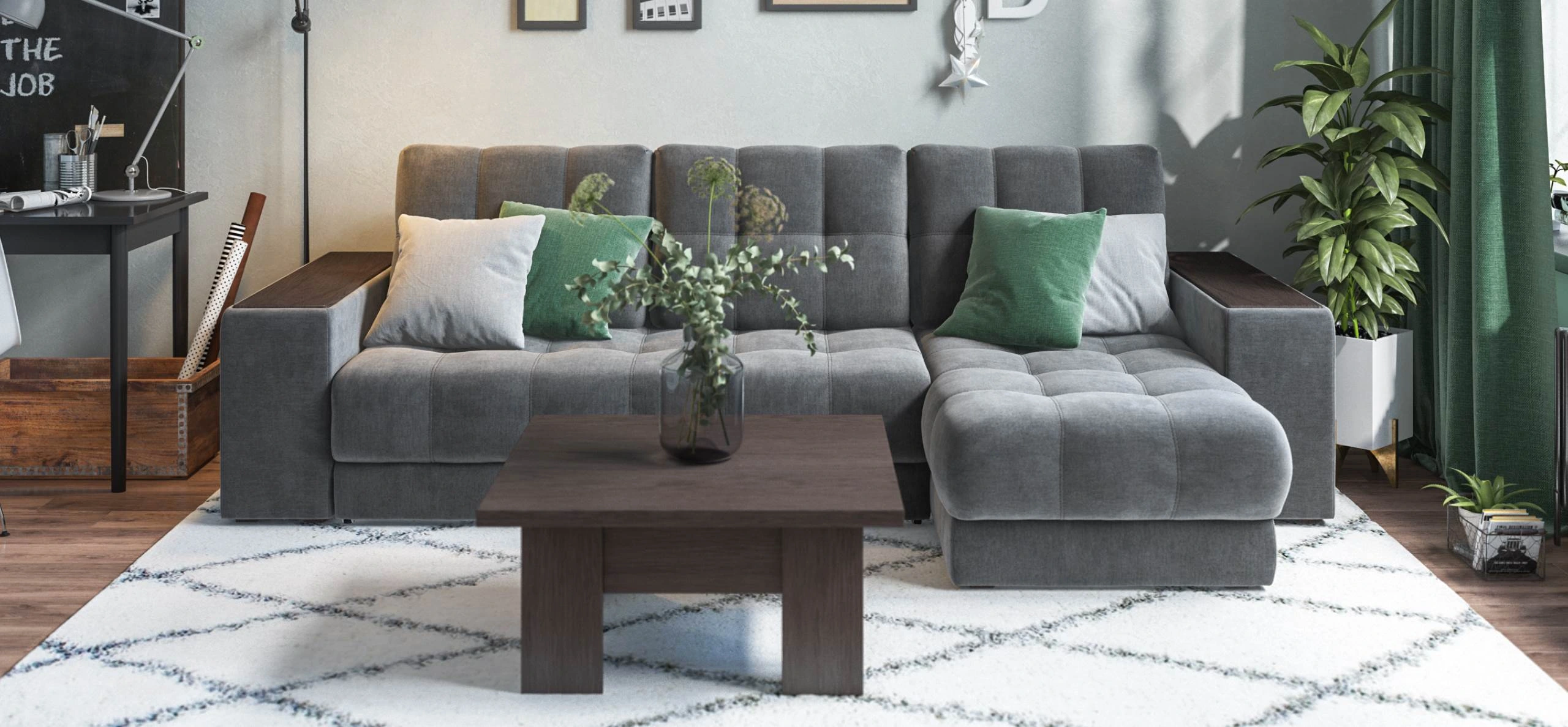 Продуманный до мелочей диван Босс сочетает в себе функциональный подлокотник, мягкие ткани, надежный каркас, качественное наполнение матраса и быструю сборку за 1 минуту без инструментов - ощутите комфорт у себя дома!