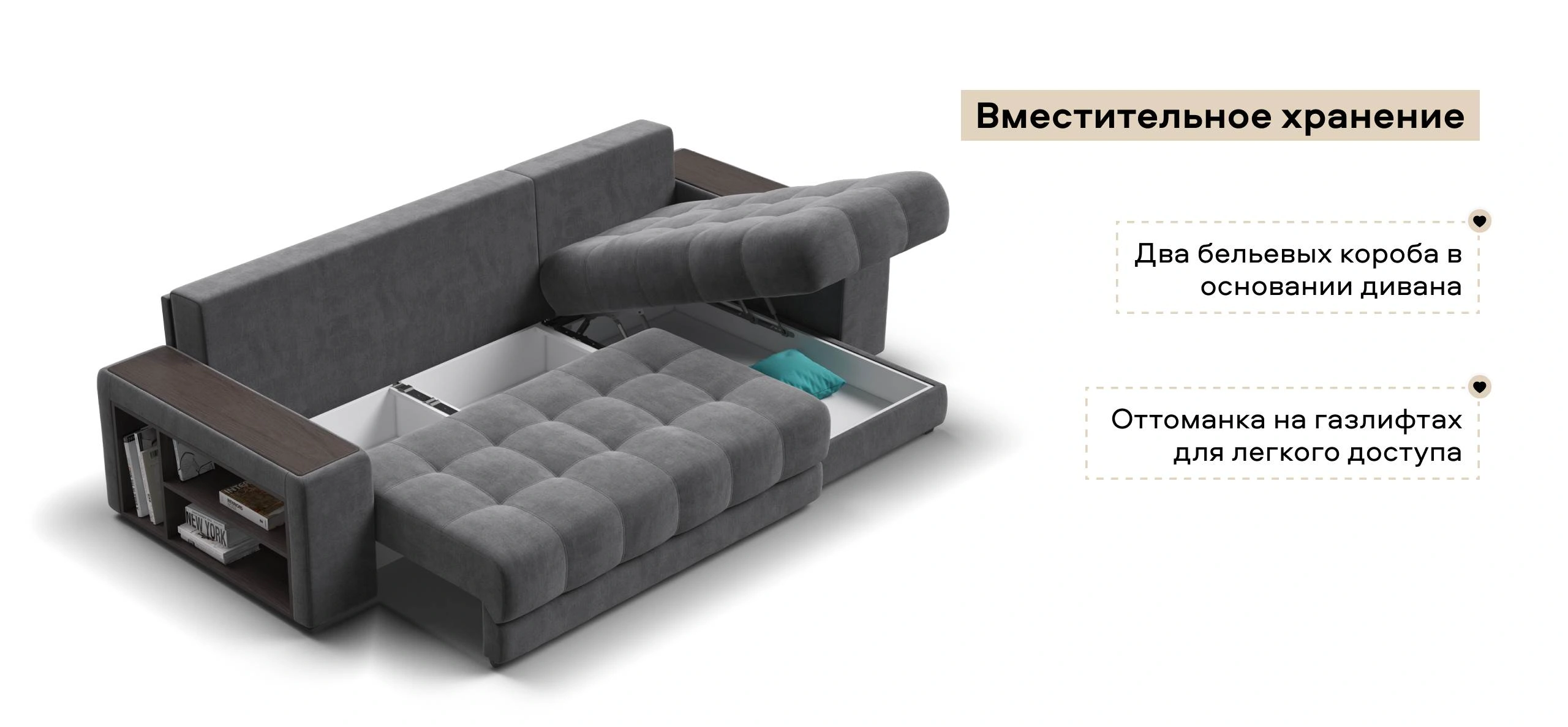 Угловой диван Босс ХЛ - диван с подъемной оттоманкой и механизмом Еврокнижка.