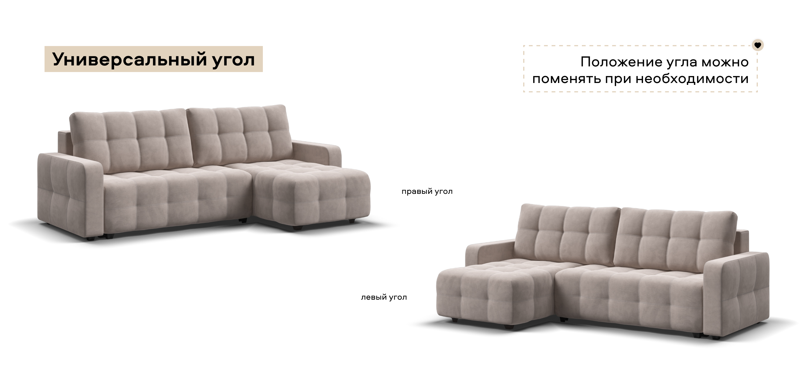 Универсальный угол - положение угла клиент определяет при сборке.