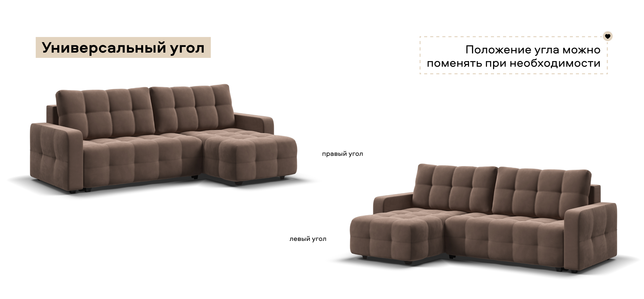 Универсальный угол - положение угла клиент определяет при сборке.