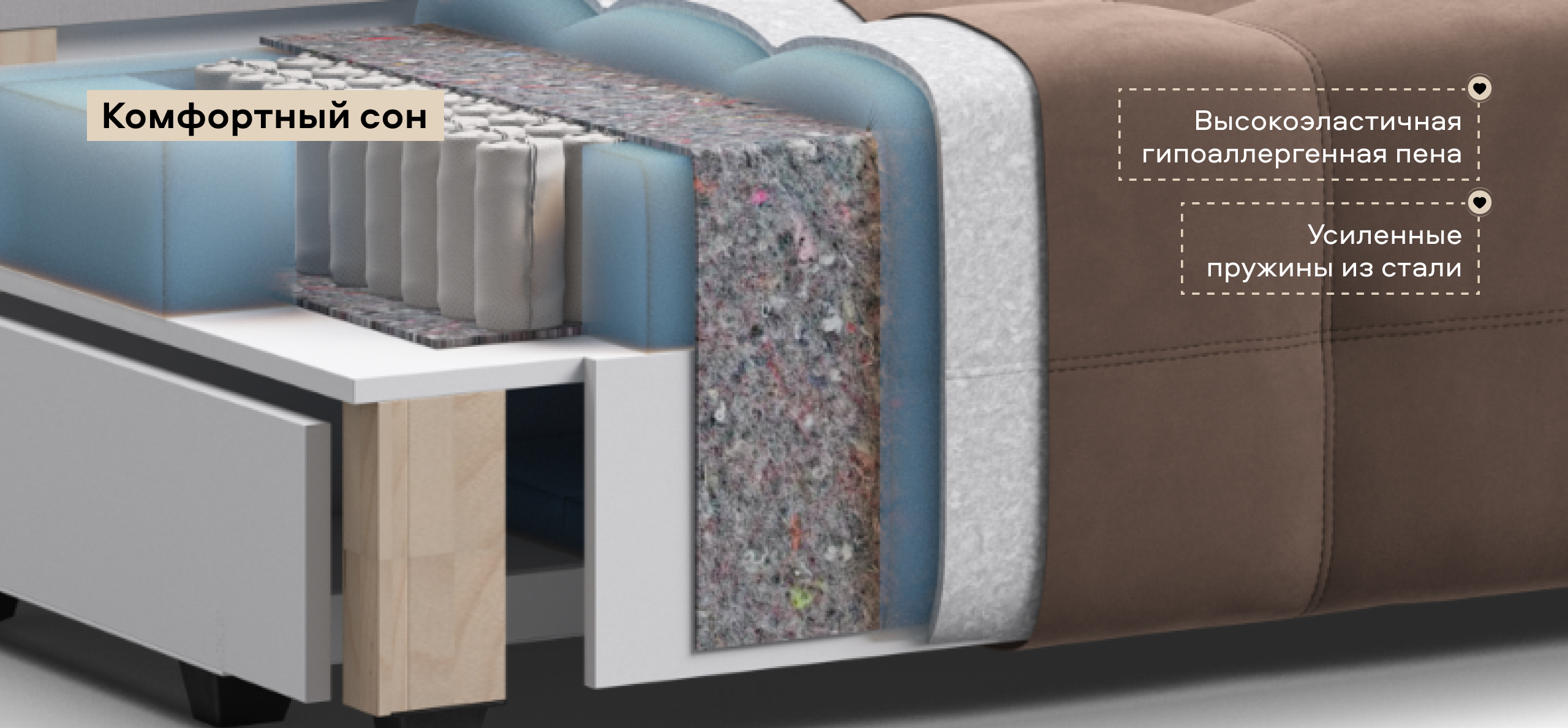 Простой и надежный механизм трансформации еврокнижка позволяет с легкостью раскладывать диван в удобную, полноценную, двуспальную кровать.