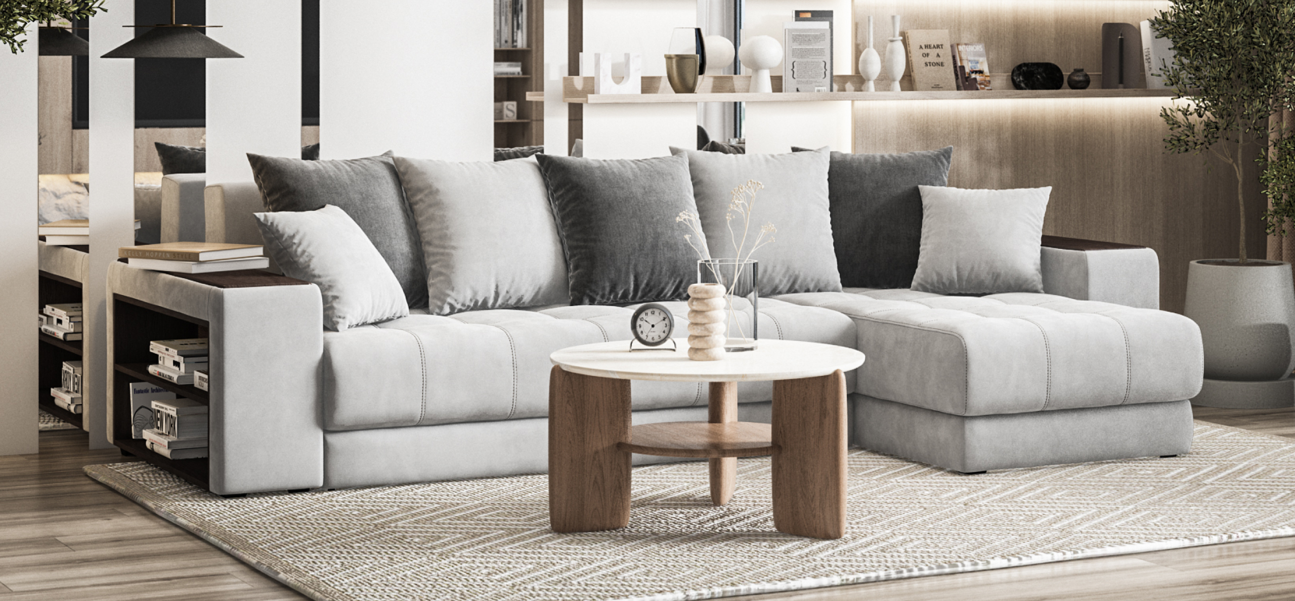 Просторный и очень удобный угловой диван Дубай станет стильным акцентом в Вашей гостиной и любимым местом для отдыха в кругу семьи и друзей. Его широкое сиденье и мягкие подушки с комфортом разместят даже большую компанию.