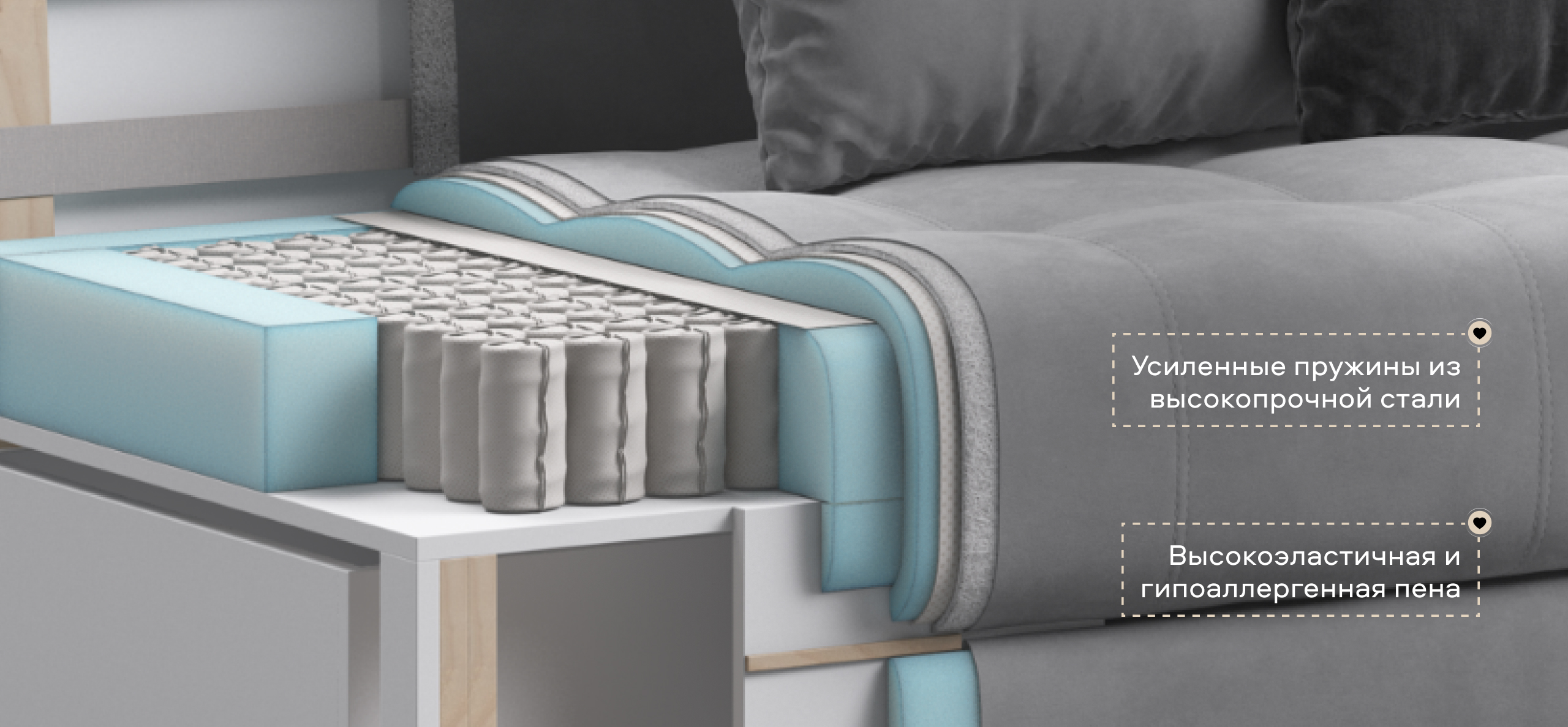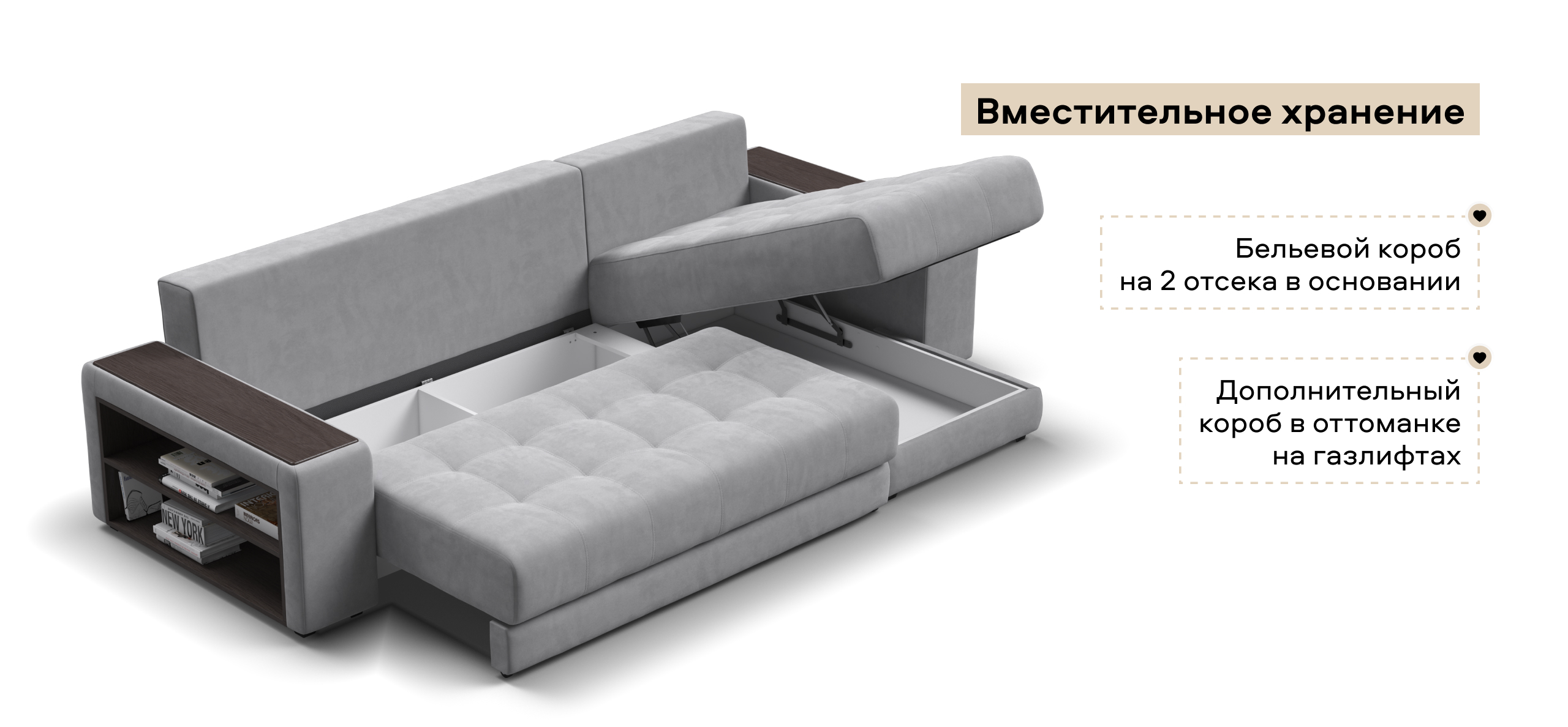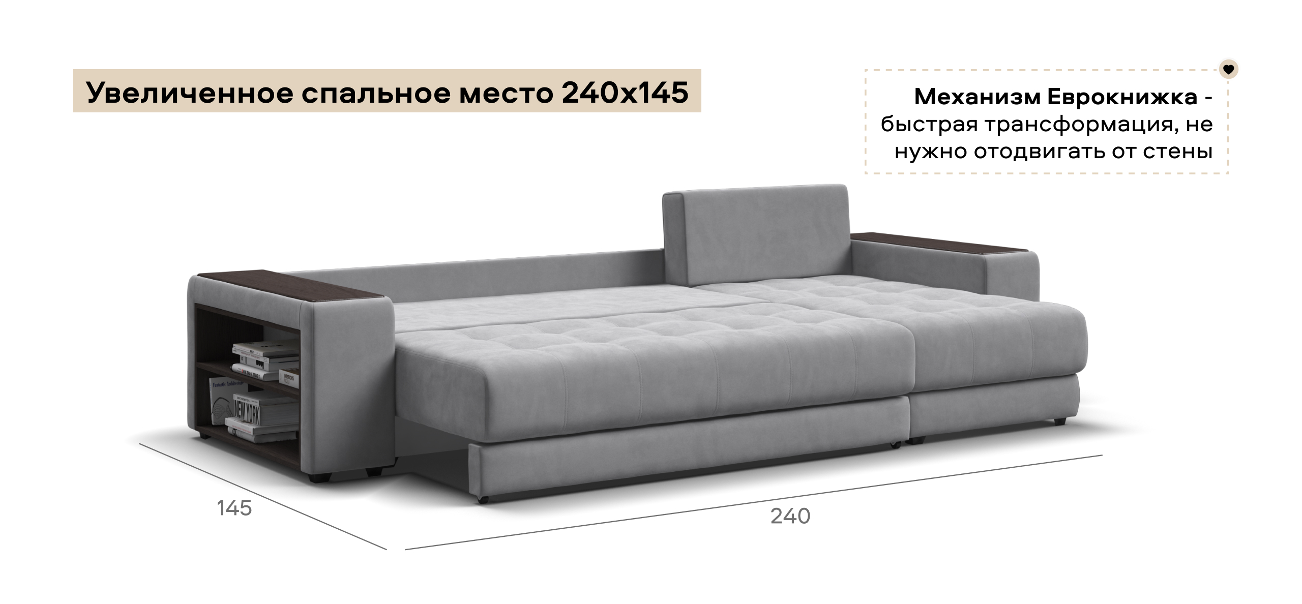 Надежный механизм трансформации еврокнижка сделает Дубай достойной альтернативой традиционной кровати. В основании дивана размещены большие и удобные бельевые ящики.