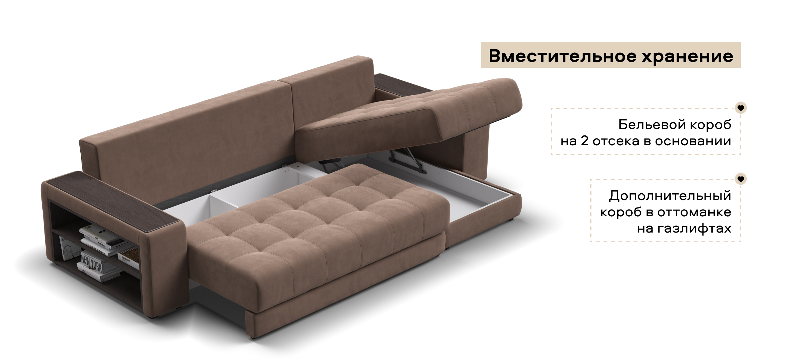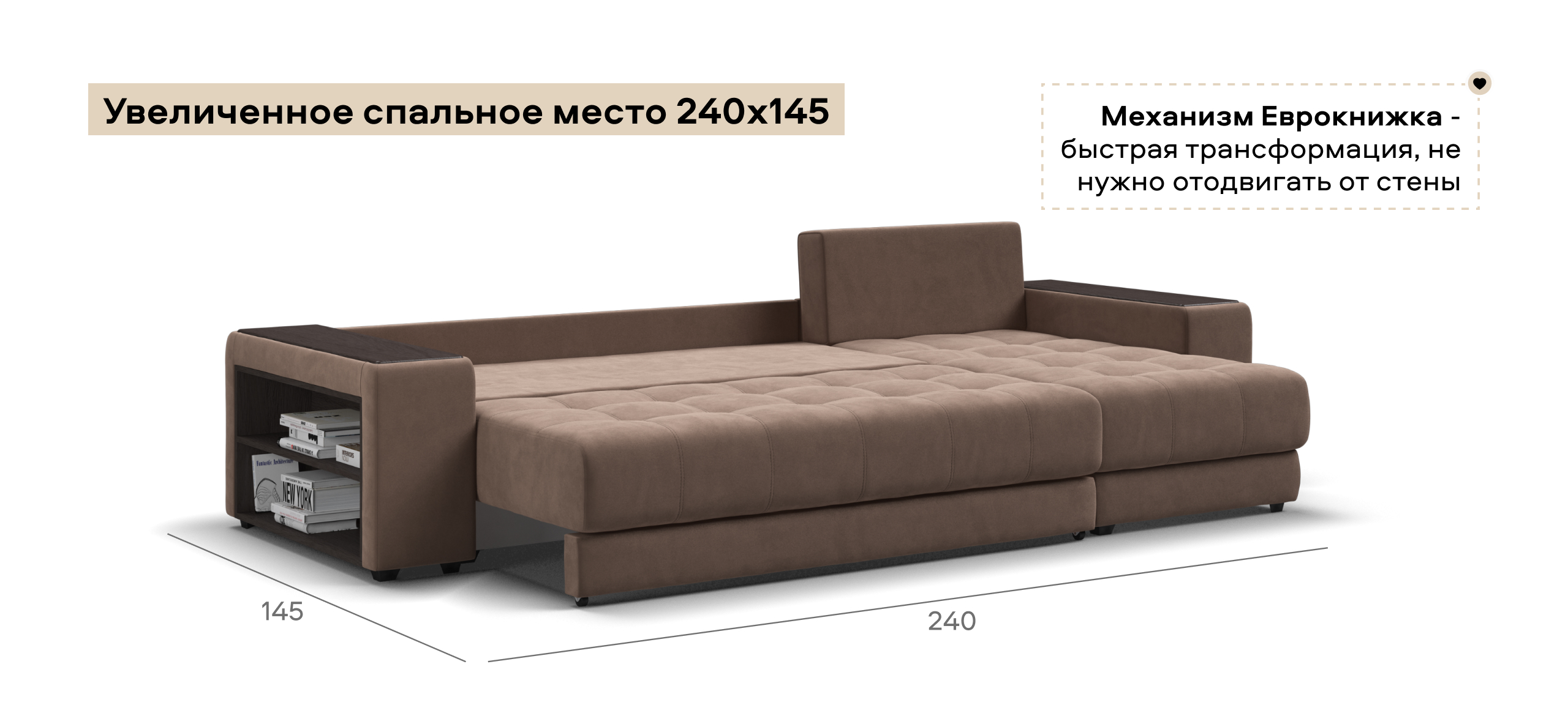 Надежный механизм трансформации еврокнижка сделает Дубай достойной альтернативой традиционной кровати. В основании дивана размещены большие и удобные бельевые ящики.