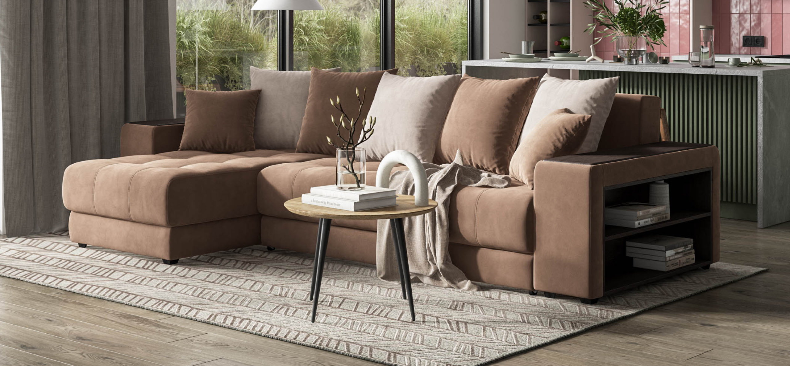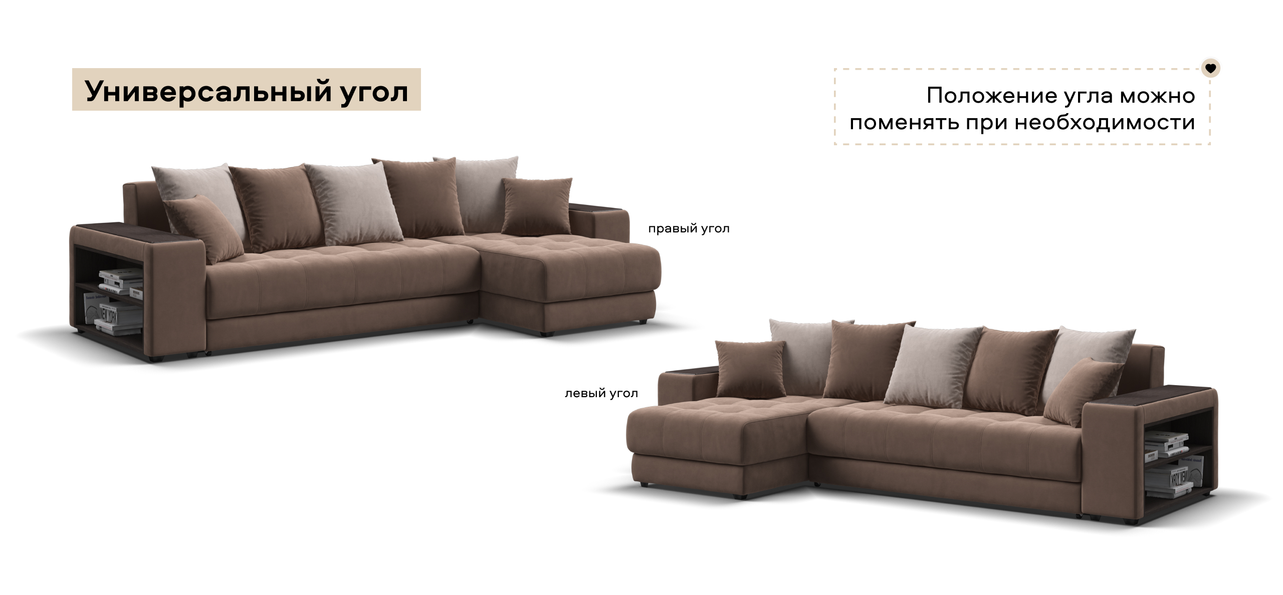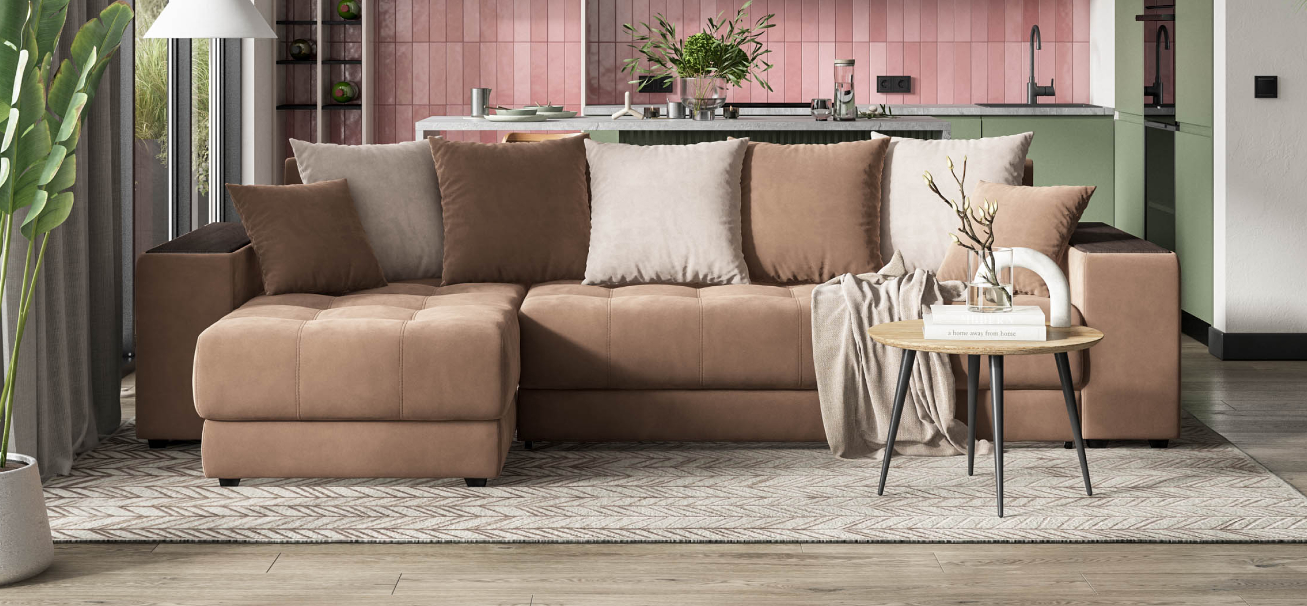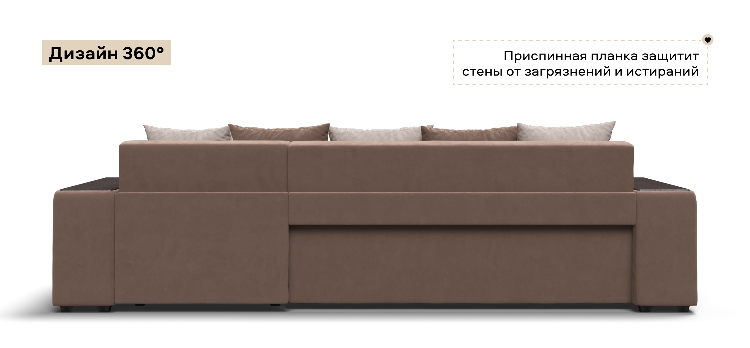 Угловой диван Дубай велюр Монолит мокко, велюр Монолит латте