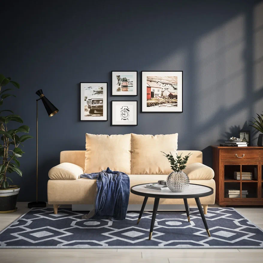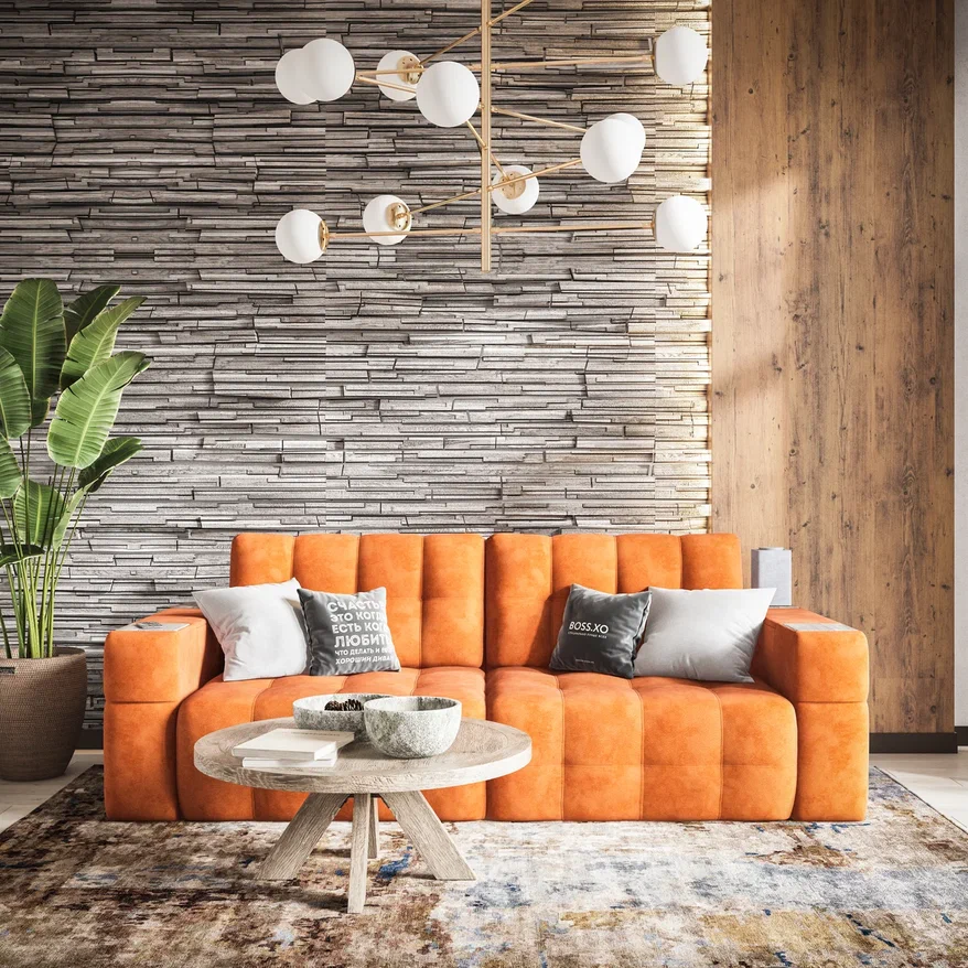 Важно учитывать не только габариты самой мебели, но и площадь вашей гостиной. Измерьте пространство, где будет стоять предмет, и предусмотрите достаточно места для прохода и других вещей — журнального столика, ковра, комода. Также обратите внимание на высоту потолков: в комнате с низким потолком крупная конструкция будет смотреться еще более громоздкой.