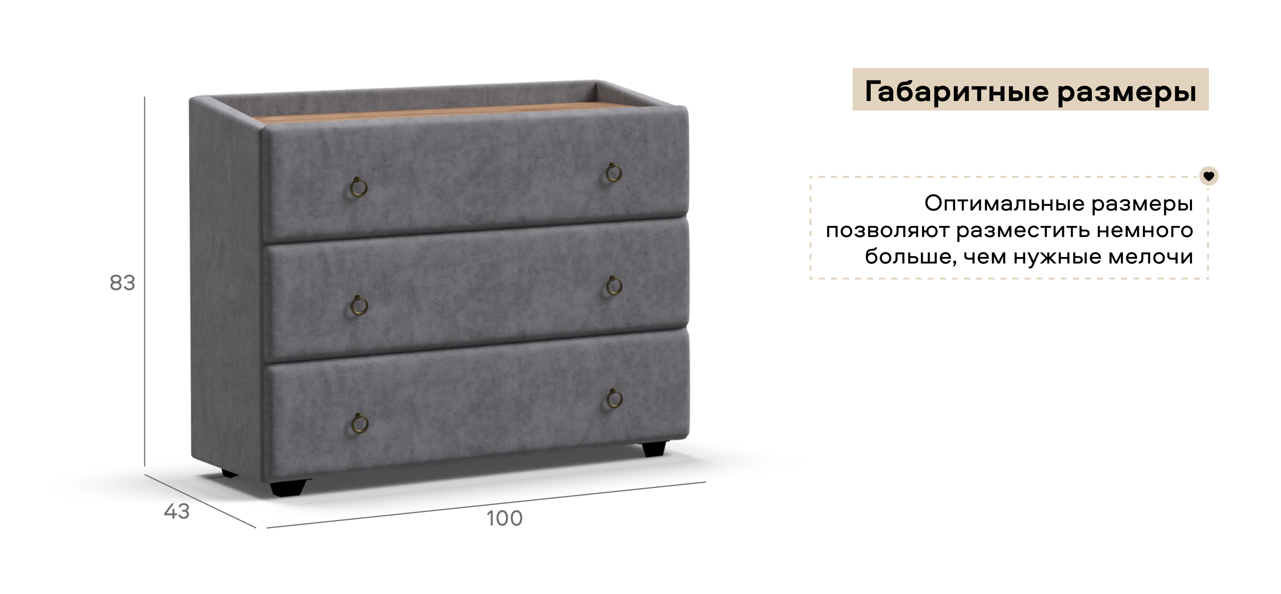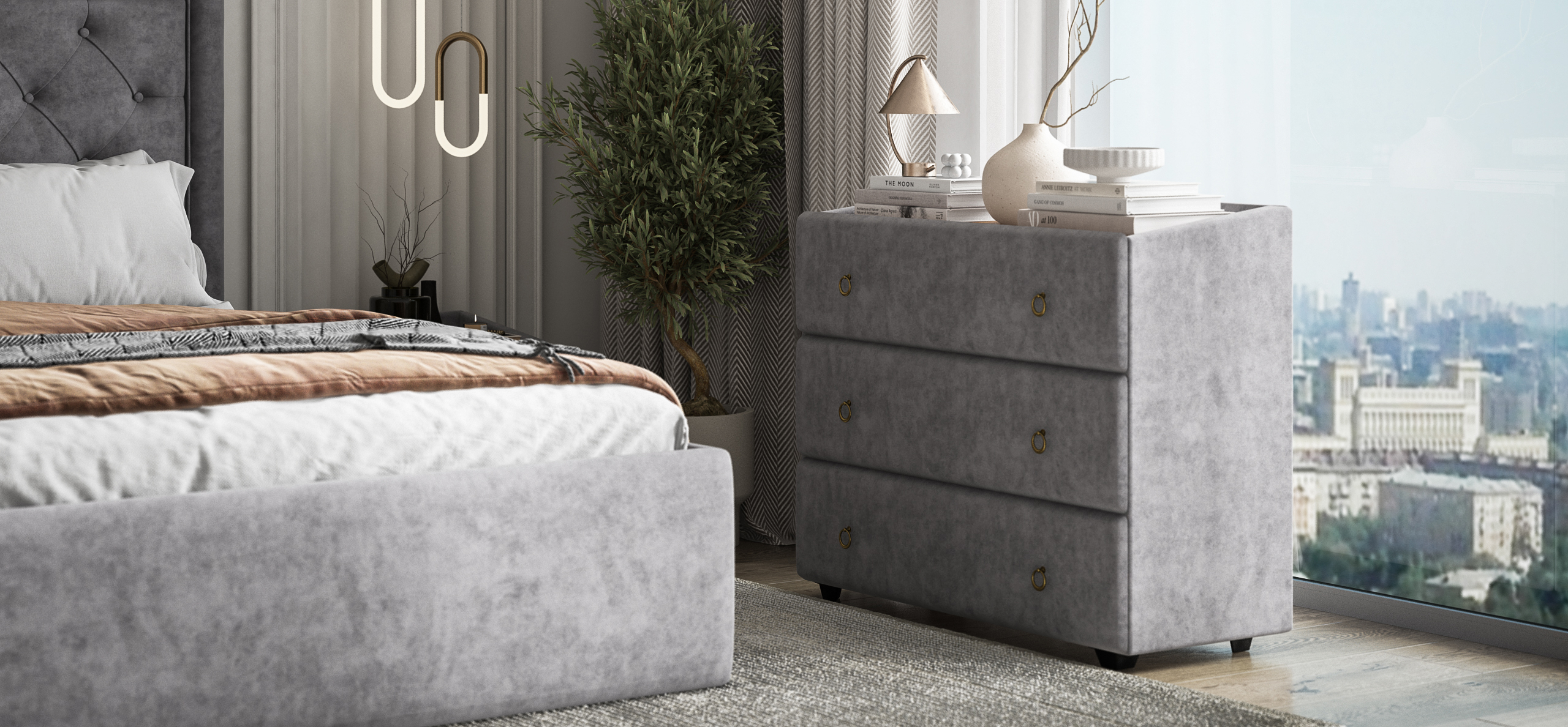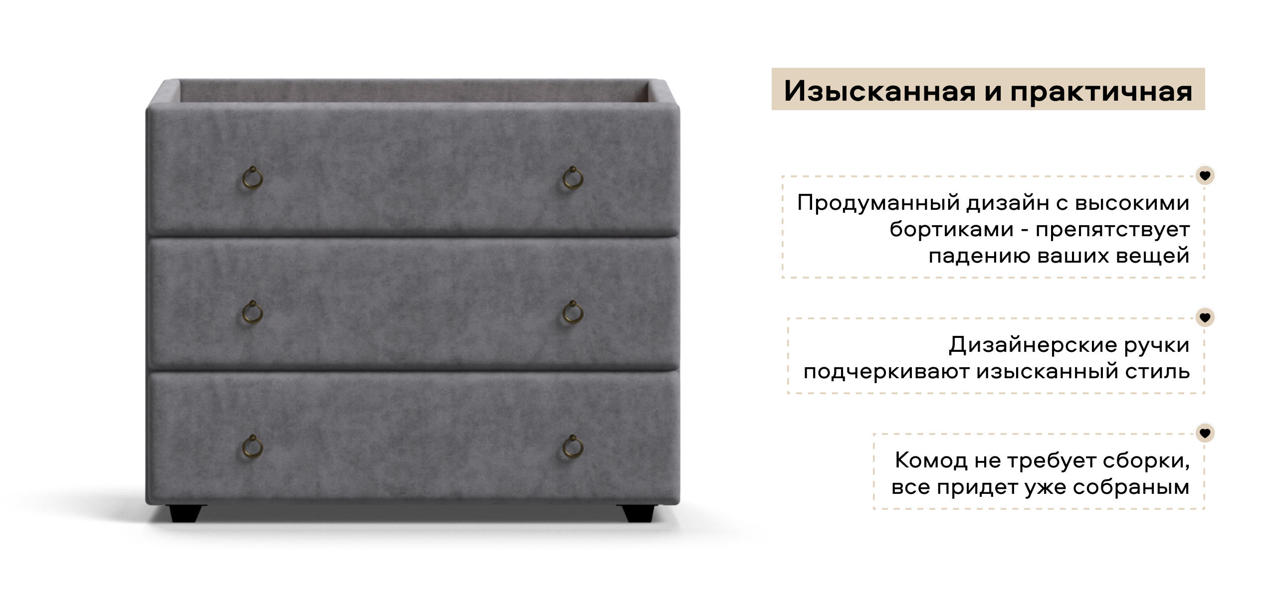 Комод Босс Классик разработан специально для вашего максимального комфорта. Три вместительных ящика из качественных материалов с усиленными направляющими скрытого монтажа для хранения вещей. Продуманный дизайн комода с высоким бортиком защитит ваши ценные вещи от падения, а дизайнерская ручка подчеркнет изысканный вкус владельца. Новые цвета ЛДСП в теплом и холодном оттенке подобраны специально под наши ткани.