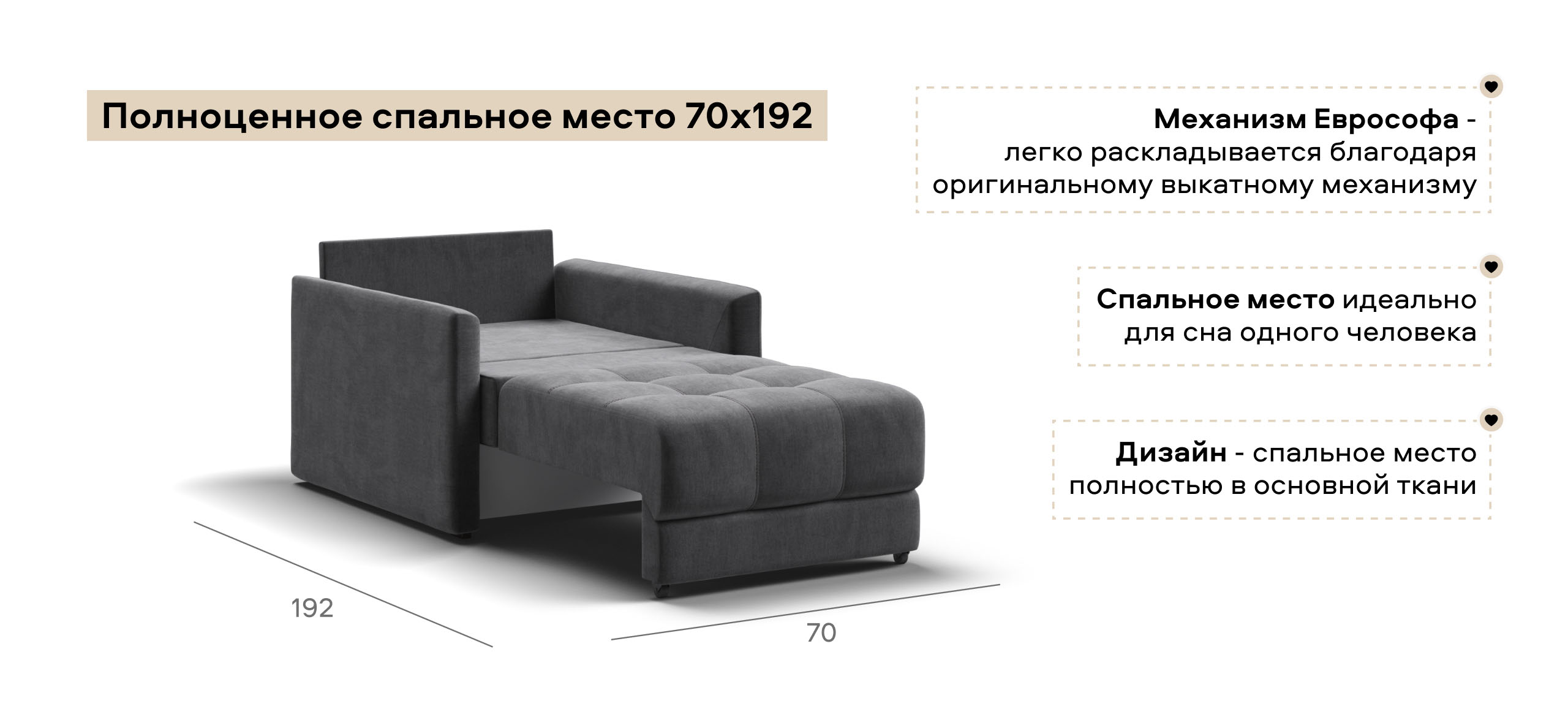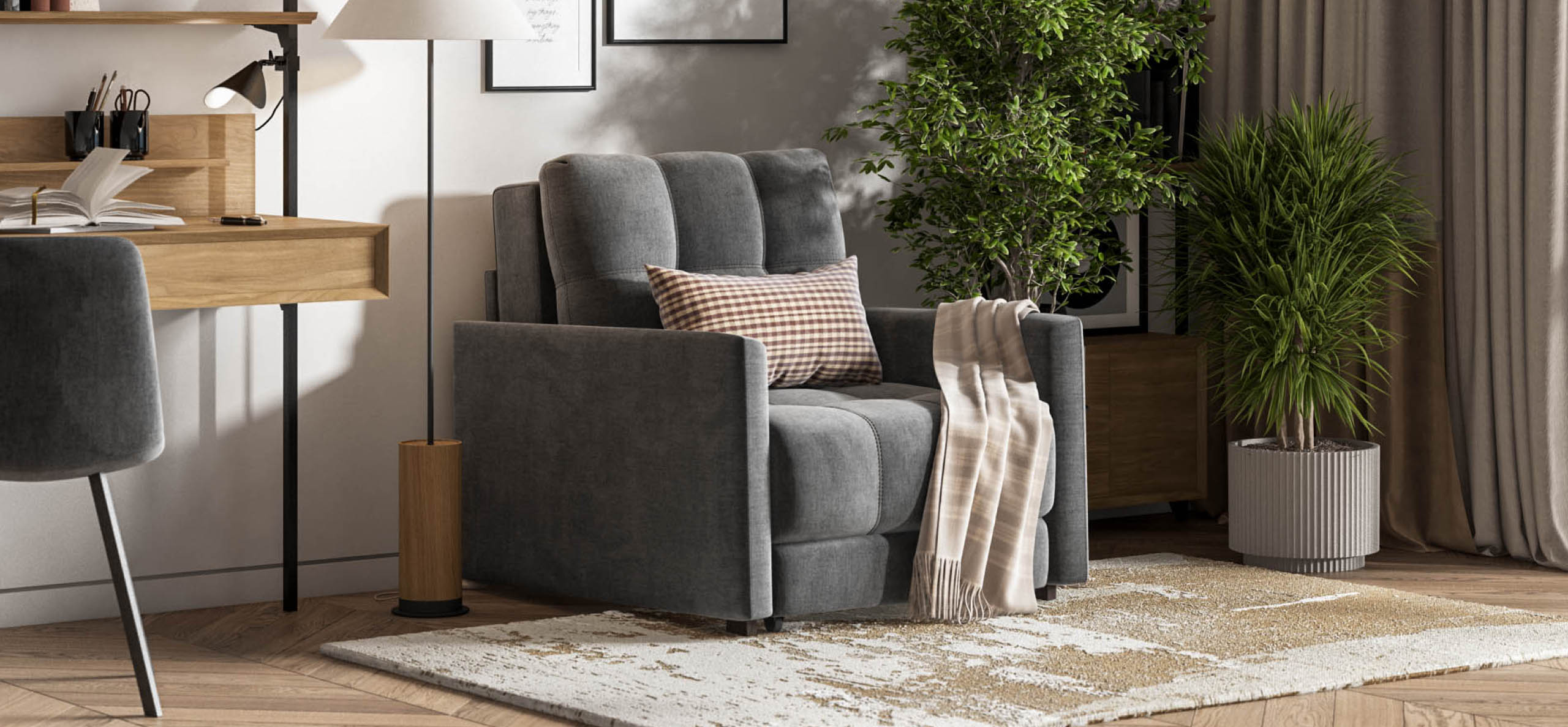 Босс Лофт кресло-кровать - идеальное дополнение к дивану Босс Лофт, отлично сочетает в себе две функции: подарит комфортный отдых днем и даст полноценное спальное место для гостя, который решил остаться у вас на ночь. Тонкие подлокотники идеальны для тех, кто ищет не классическое решение для своего интерьера.