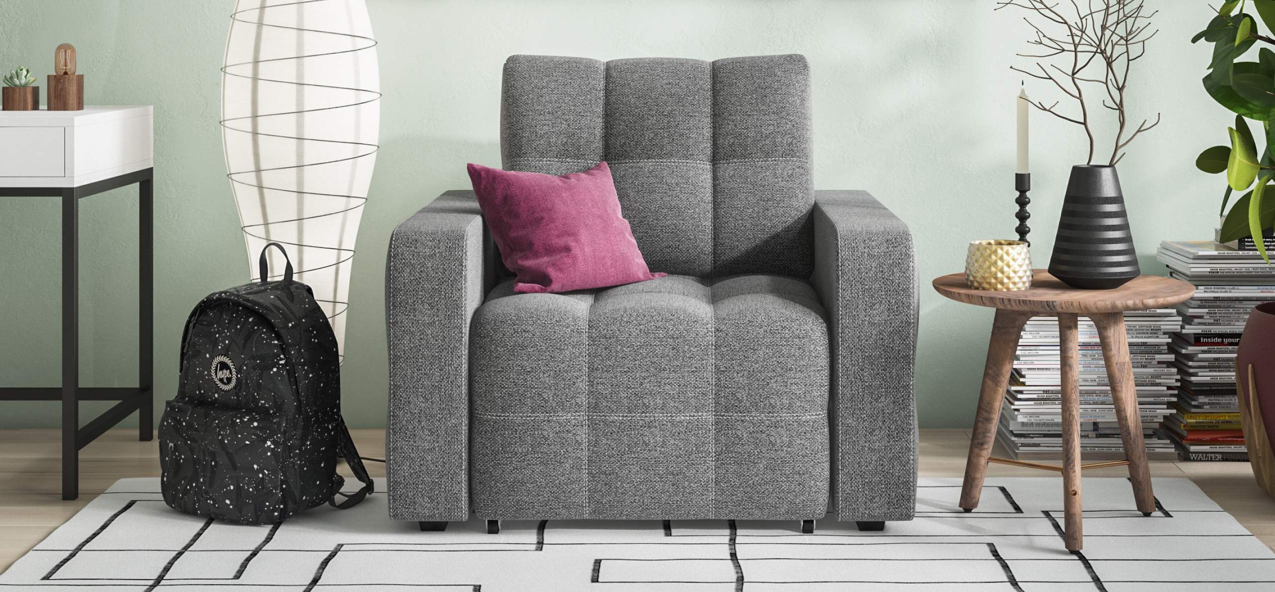 Денди кресло-кровать с механизмом Изи-Ролл, которое отлично дополняет линейку диванов Денди. Легким движением руки кресло раскладывается в удобную кровать.
