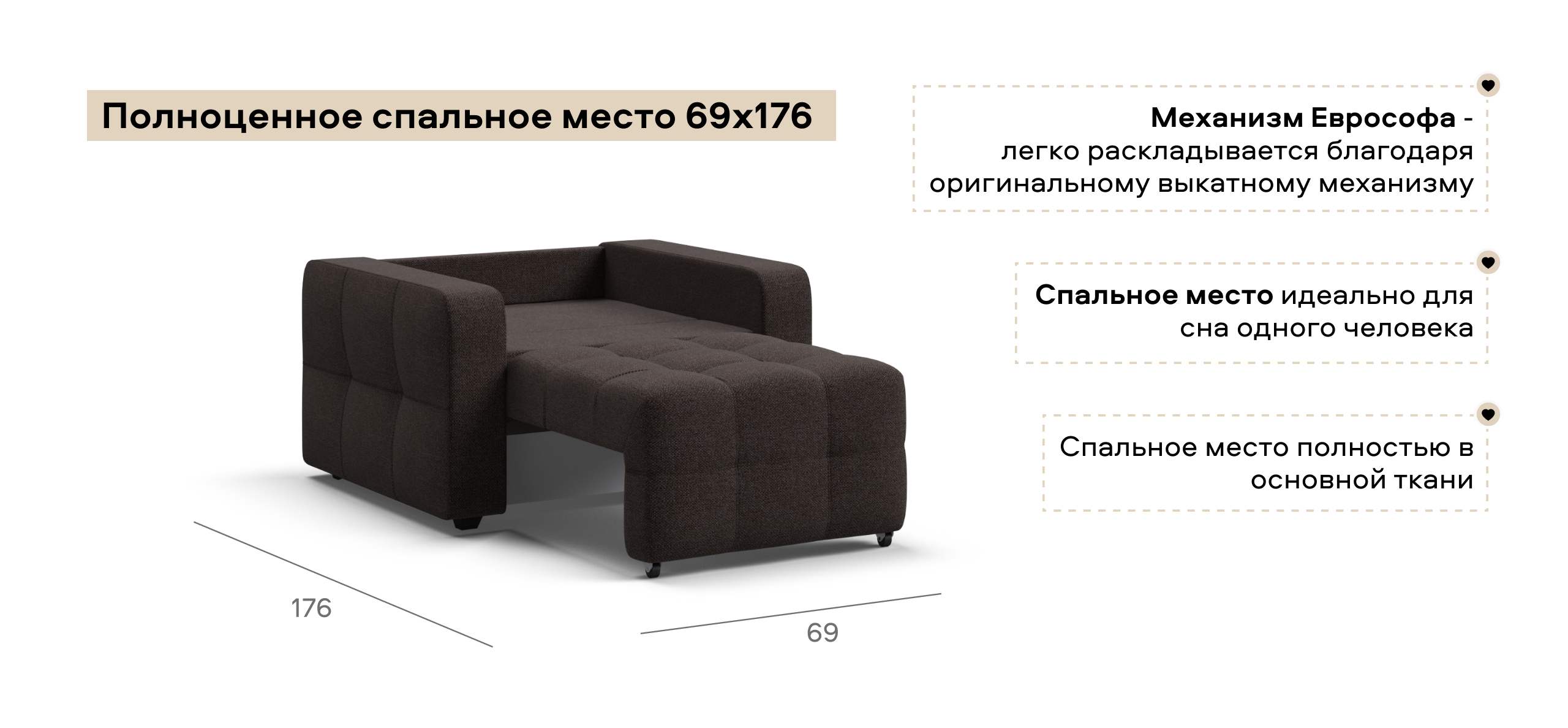 - Денди кресло-кроватьРогожка Мальмо шоколад