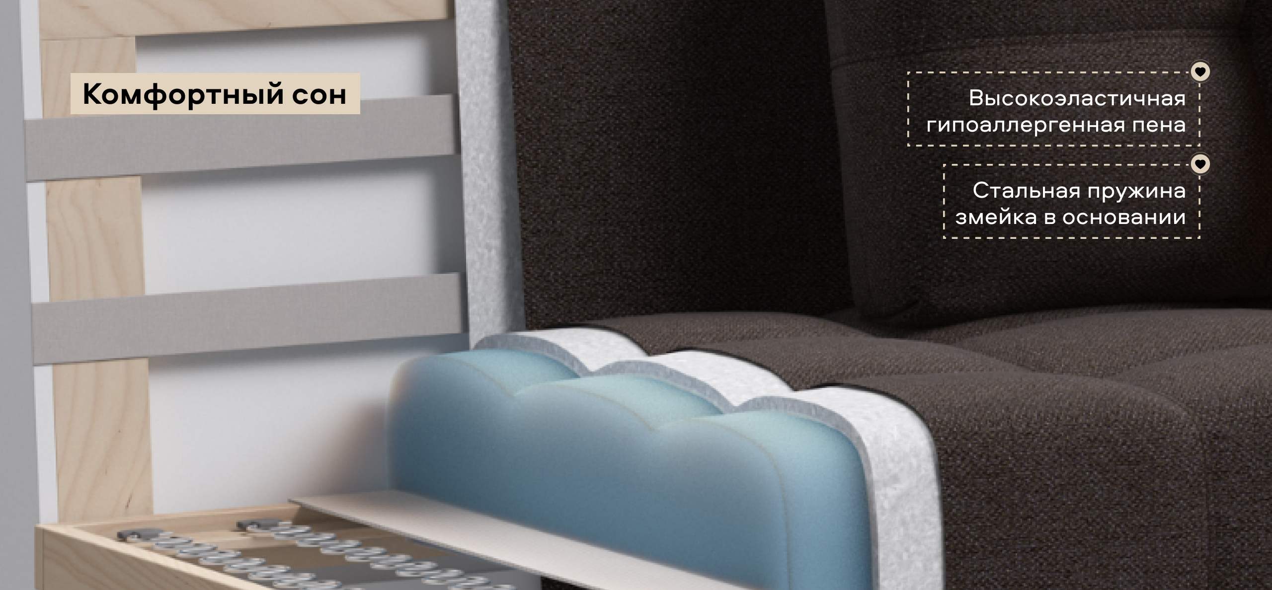 Ваш комфорт обеспечит матрас выполненный из высокоэластичного ППУ, в сочетании со стальной пружинной змейкой в основании