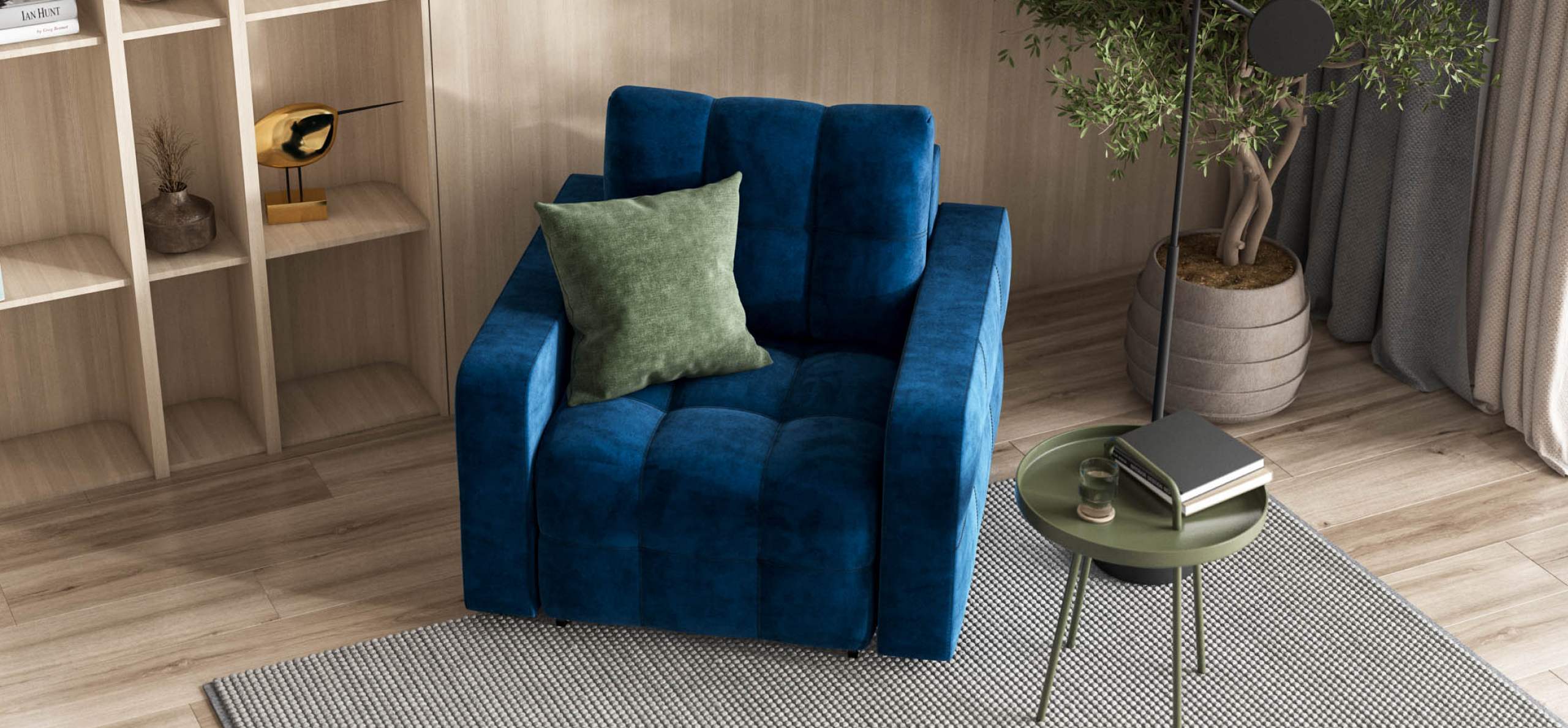 Денди кресло-кровать с механизмом Изи-Ролл, которое отлично дополняет линейку диванов Денди. Легким движением руки кресло раскладывается в удобную кровать.