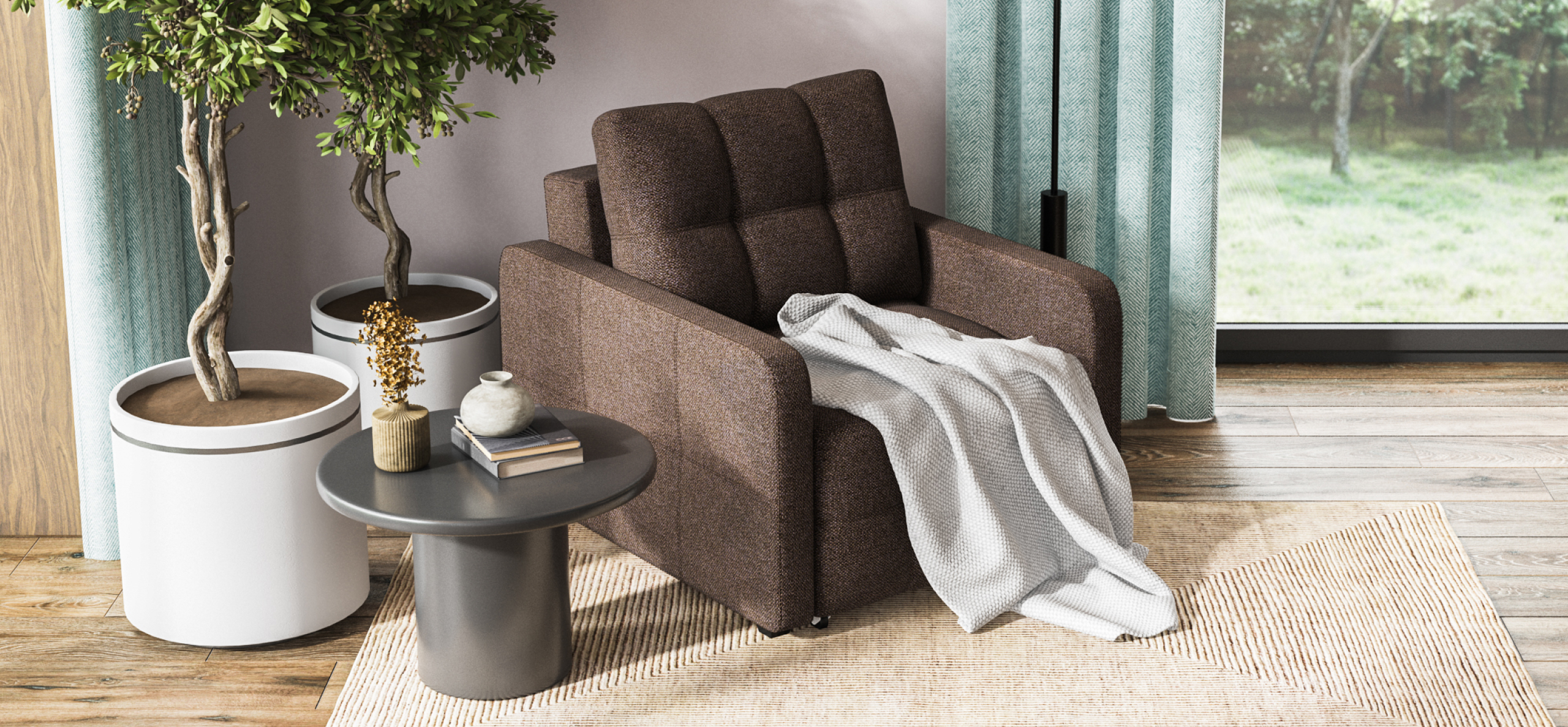 Кресло-кровать Денди Слим Рогожка Мальмо шоколад