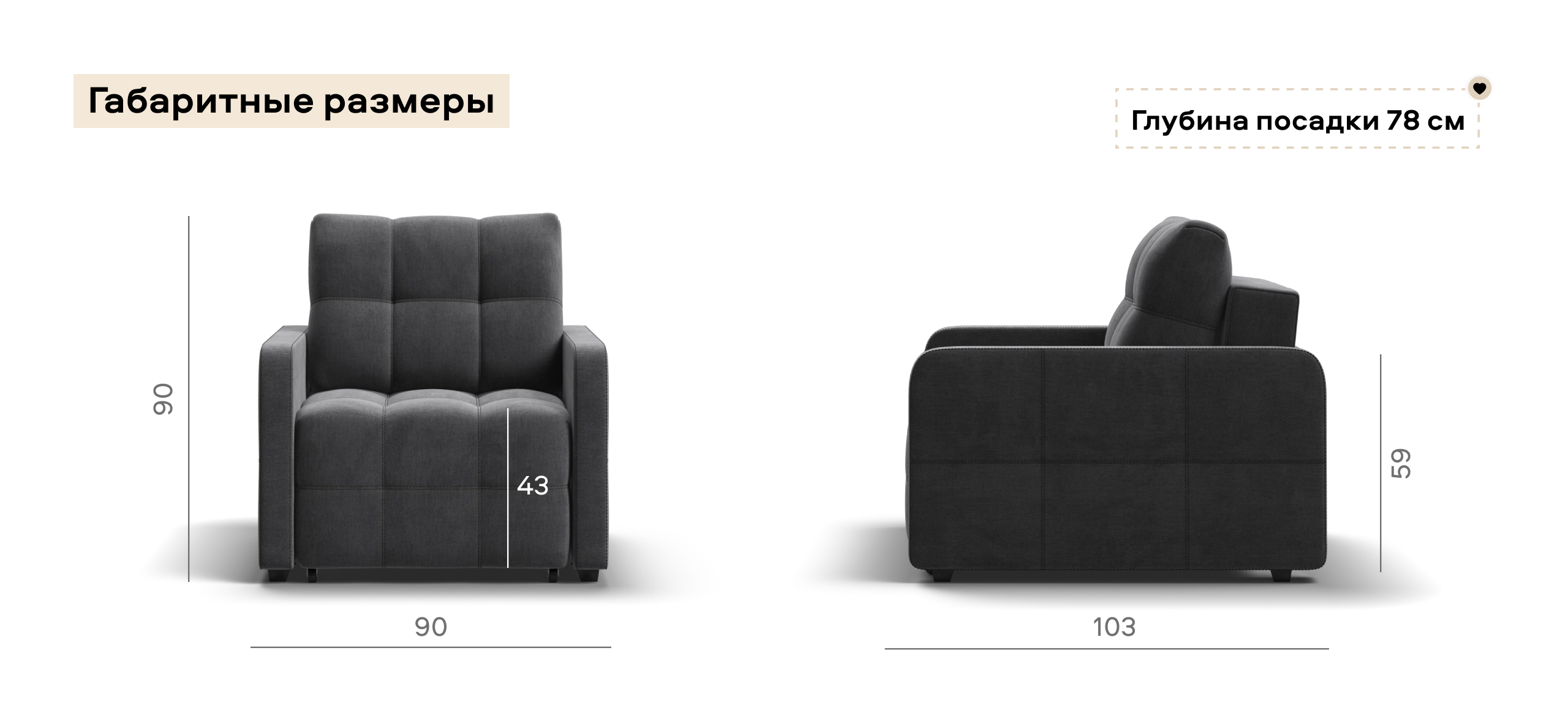 Кресло-кровать Денди Слим велюр Монолит серый