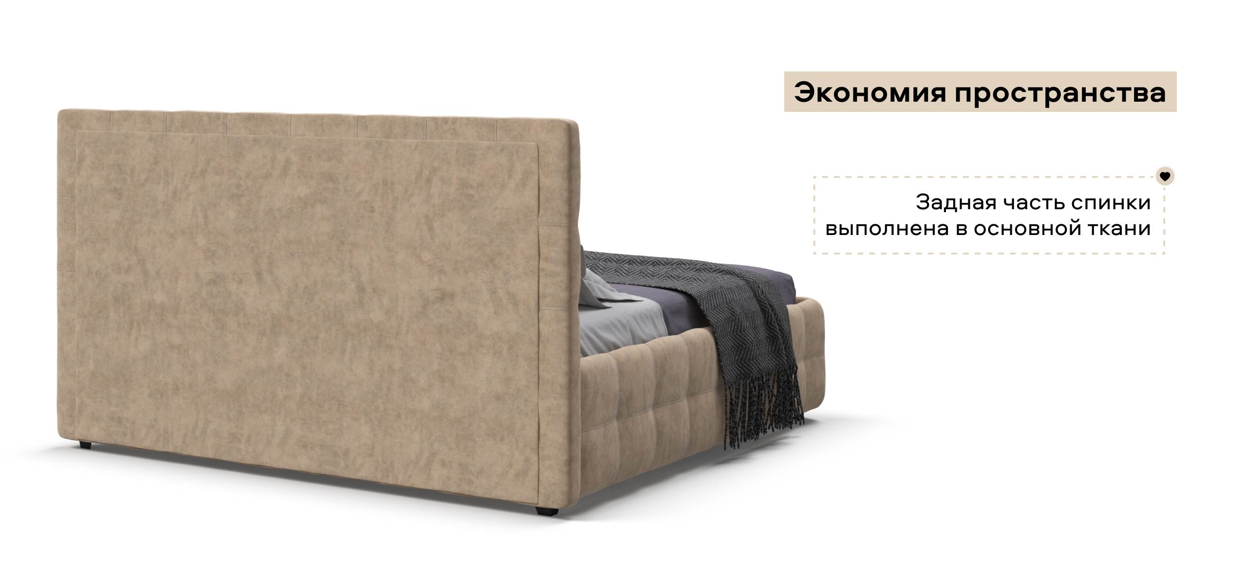 Особое внимание заслуживают газовые лифты SpaceLift, изготовленные из авиационного алюминия. Они обеспечивают лёгкое и плавное поднятие матраса, что делает доступ к отсеку для хранения быстрым и удобным. Дизайн 360 предполагает, что задняя часть спинки кровати также выполнена из основной ткани, что позволяет размещать кровать не только у стены, но и в центре комнаты, сохраняя при этом её эстетическую привлекательность.