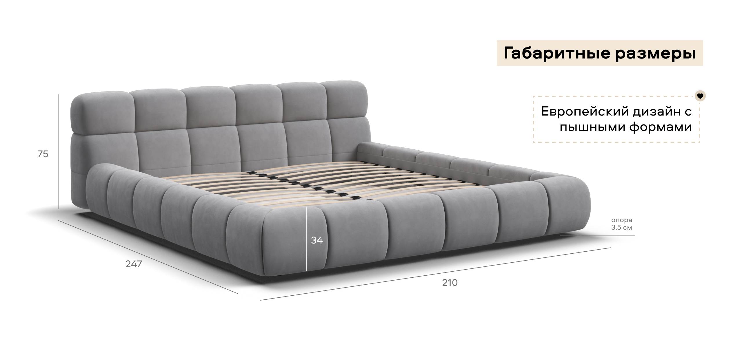 Босс Дрим — это воплощение итальянского дизайна, известного своим вниманием к деталям и утонченным стилем. Пышные формы кровати и рельефное мягкое изголовье создают атмосферу роскоши и уюта, делая вашу спальню центром изысканности и элегантности. Каждая линия каркаса, четко продуманная и аккуратно выполненная, придает конструкции эффект пышности и мягкости.