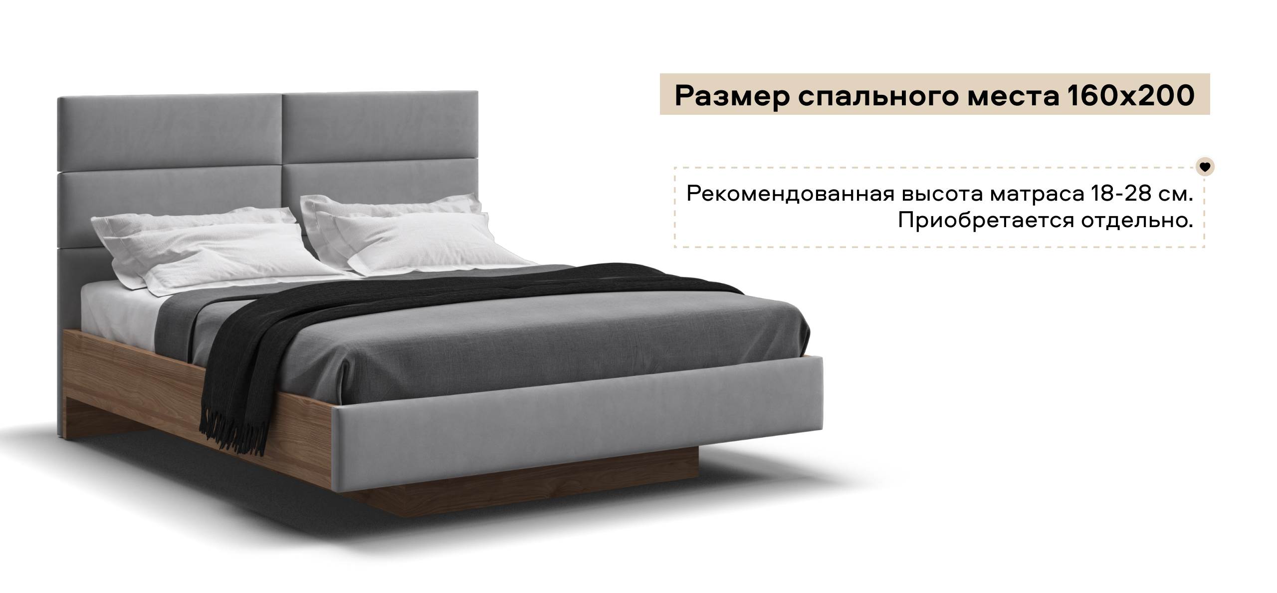 Босс Лофт Кровать+ПМ 160*200 велюр Монолит сталь, Орех селект