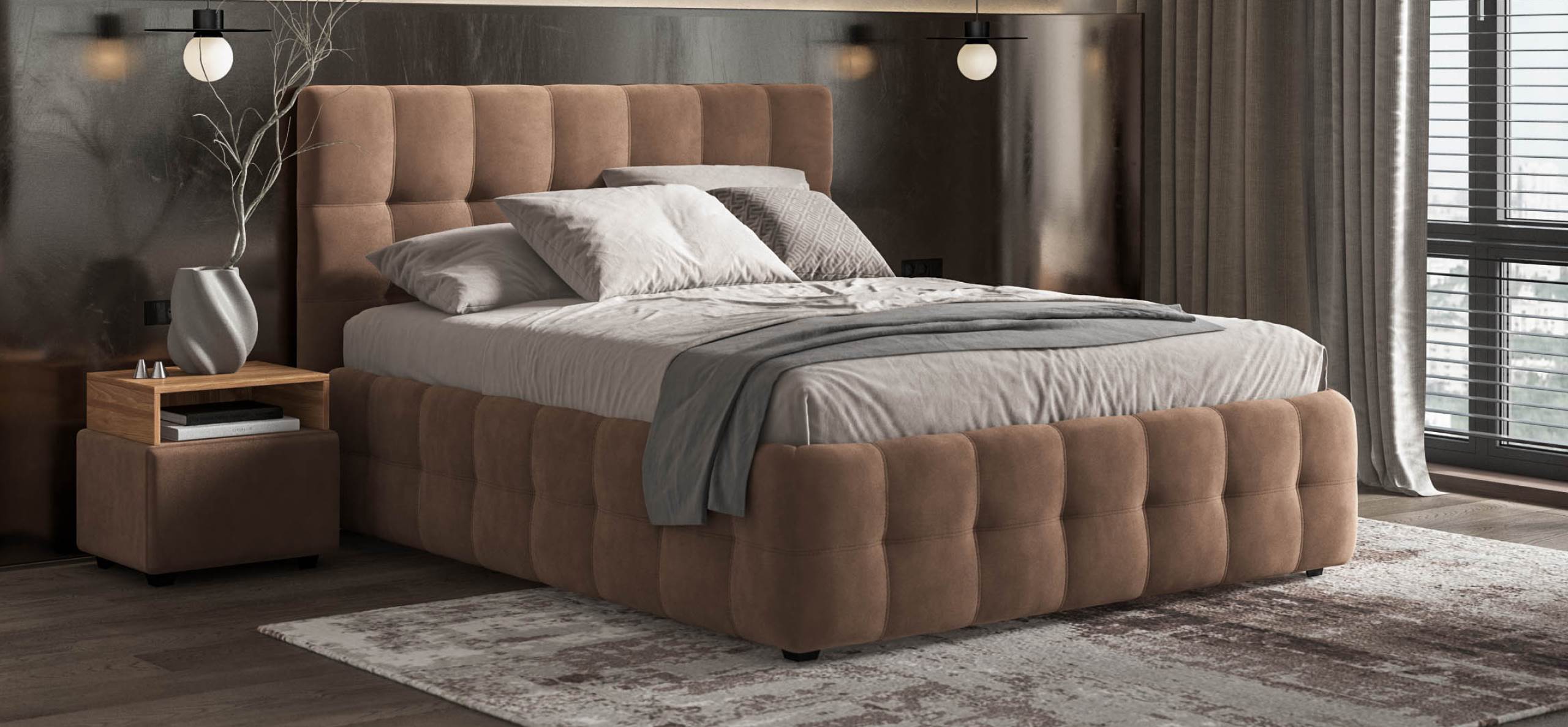 Кровать Босс — это воплощение элегантности и минимализма. Её лаконичный дизайн, подчёркнутый мягким изголовьем с геометричным узором, делает эту кровать центральным элементом любой спальни. Комфортные обивки создают неповторимое ощущение уюта и способствуют полноценному отдыху.