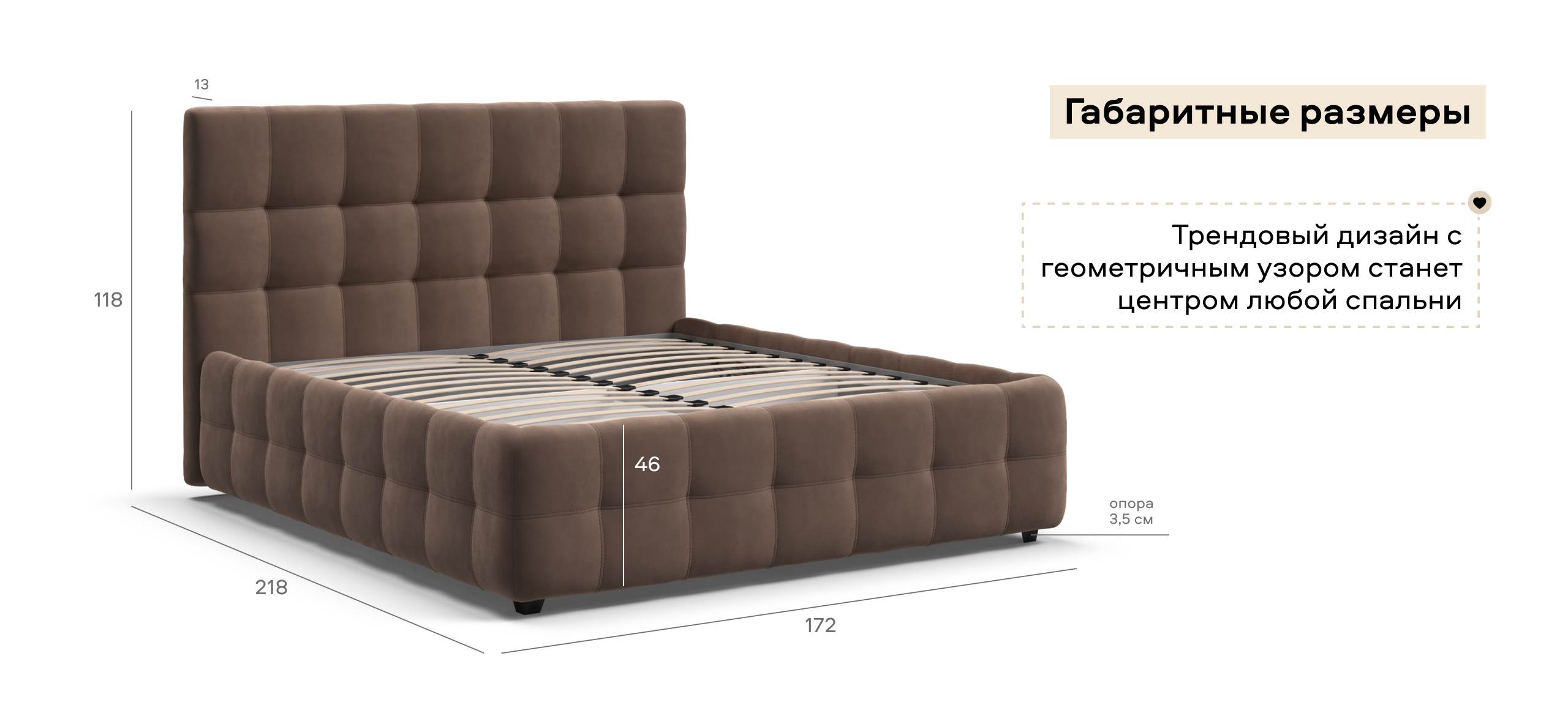 Приятная ,удобная, большая кровать ,отлично вписалась в интерьер ,приятная на ощупь.