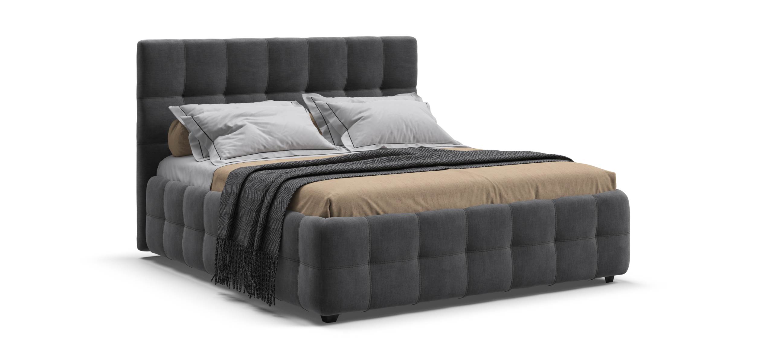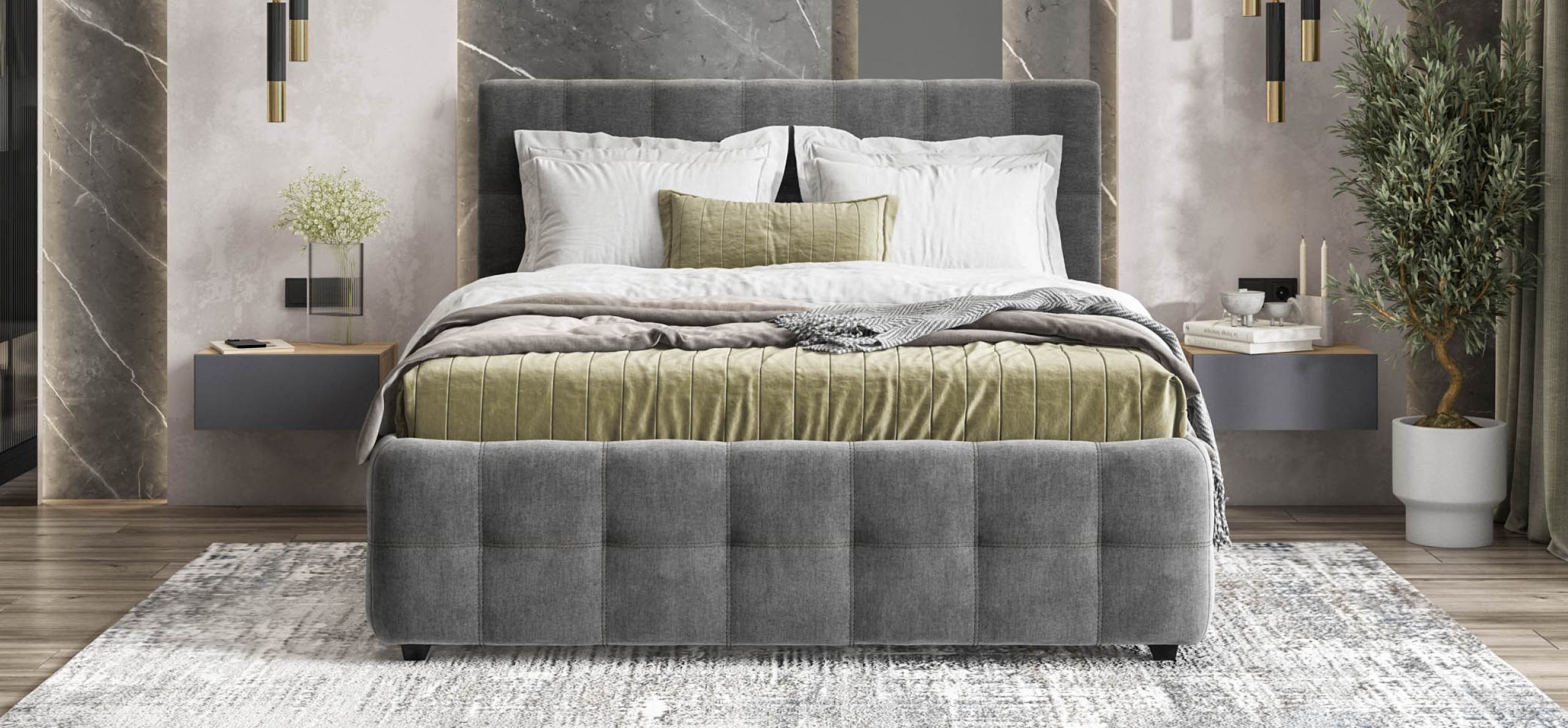 Кровать Босс — это воплощение элегантности и минимализма. Её лаконичный дизайн, подчёркнутый мягким изголовьем с геометричным узором, делает эту кровать центральным элементом любой спальни. Комфортные обивки создают неповторимое ощущение уюта и способствуют полноценному отдыху.
