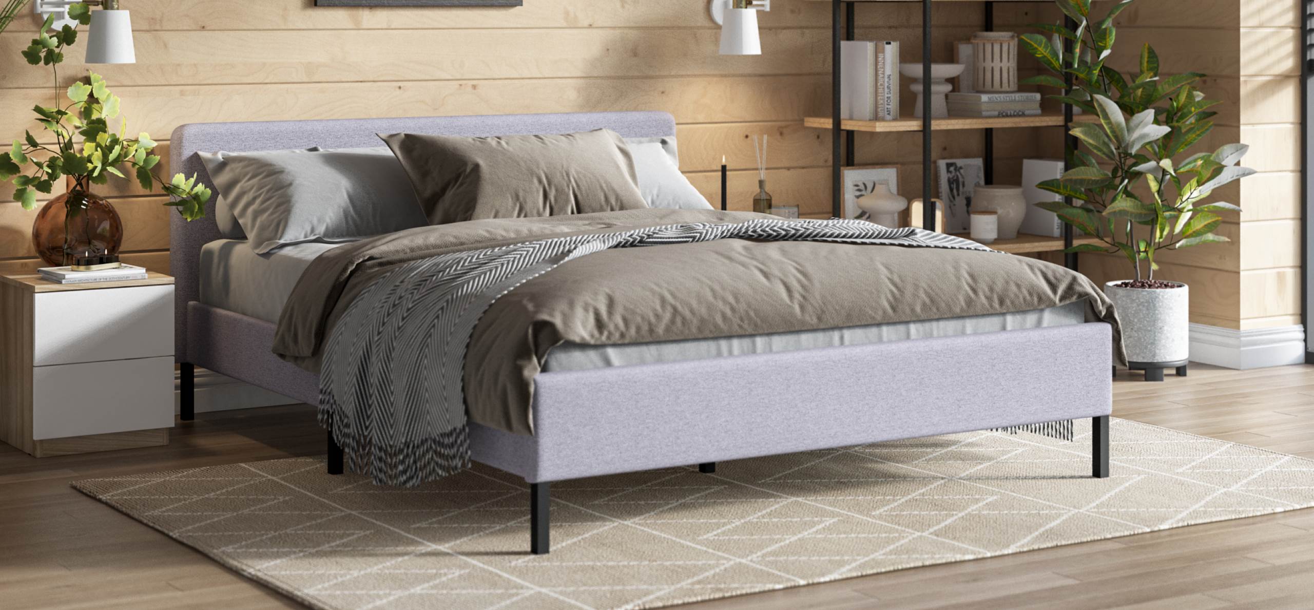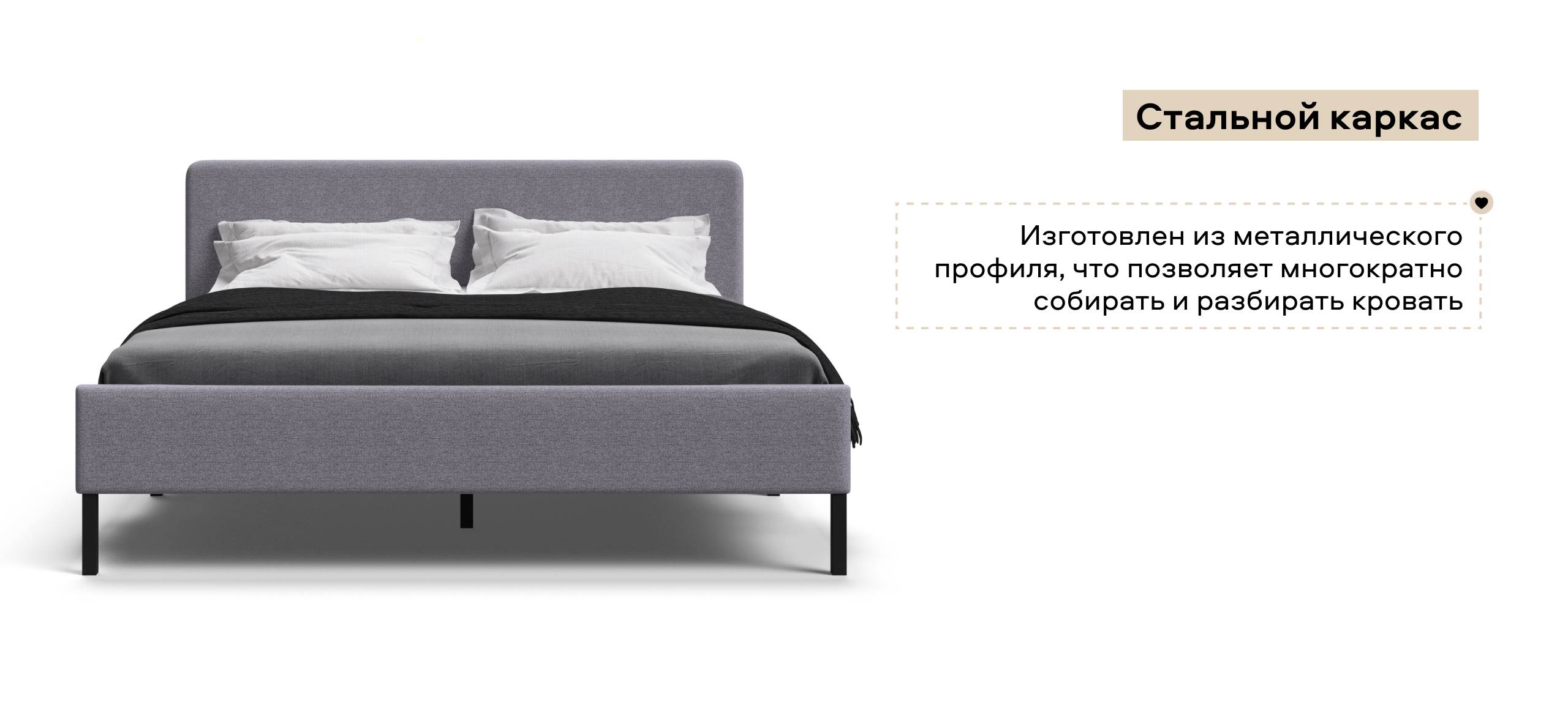 Кровать УНА в скандинавском стиле на высоких ножках прекрасно впишется в любой современный интерьер. Каркас кровати изготовлен из металлического профиля, позволяющего ей выдерживать большие нагрузки, и придающего ей долговечность. Кровать не ломается и не деформируется даже при интенсивной эксплуатации. Мягкая тканевая обивка придает кровати уютный вид. На изголовье можно удобно опереться, чтобы почитать перед сном. Пространство под кроватью можно без труда почистить пылесосом.