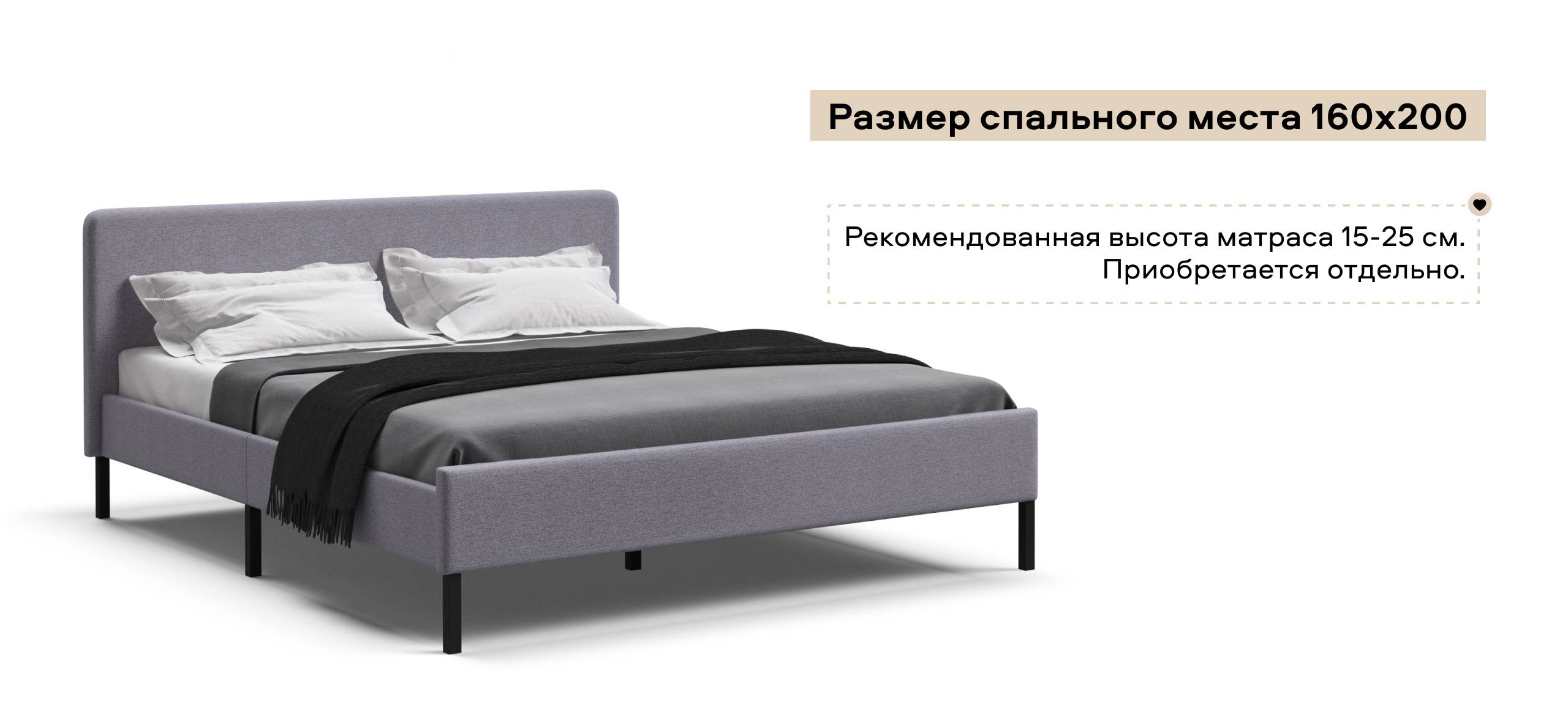 Уна Кровать 160*200Рогожка Мальмо платина, Чёрный