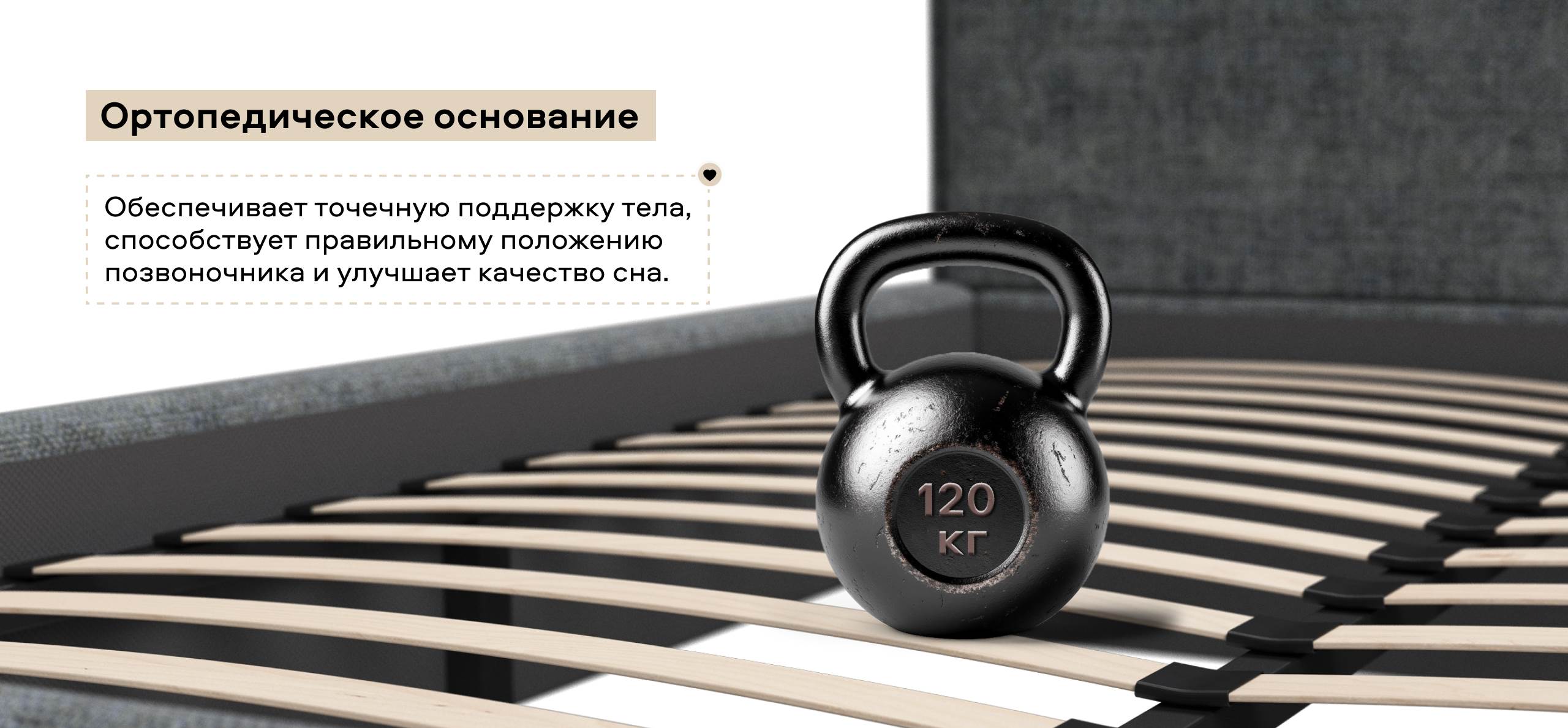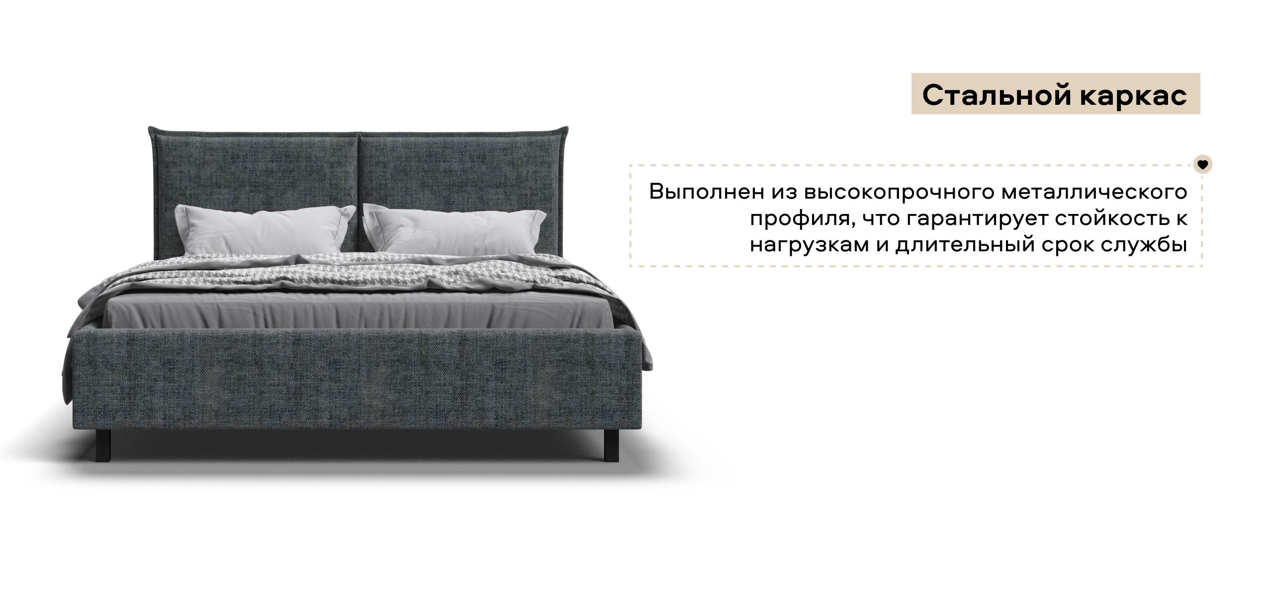 Каркас кровати выполнен из высокопрочного металлического профиля, что гарантирует стойкость к нагрузкам и длительный срок службы. Кровать не ломается и не деформируется даже при интенсивной эксплуатации.