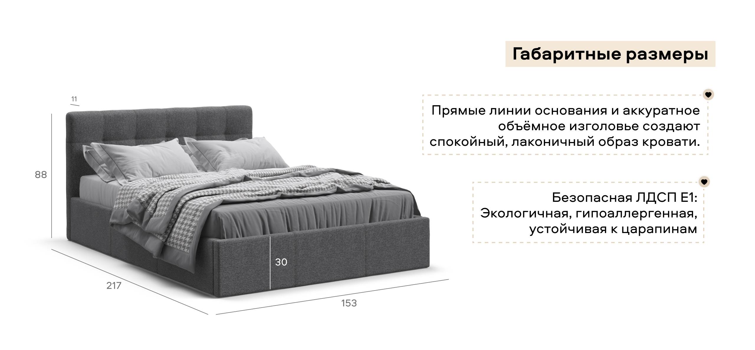 Особое внимание заслуживает мягкая спинка кровати с двойной стежкой и утяжками. Этот утончённый элемент дизайна подчёркивает изысканный вкус её владельца и придаёт кровати дополнительный шарм.