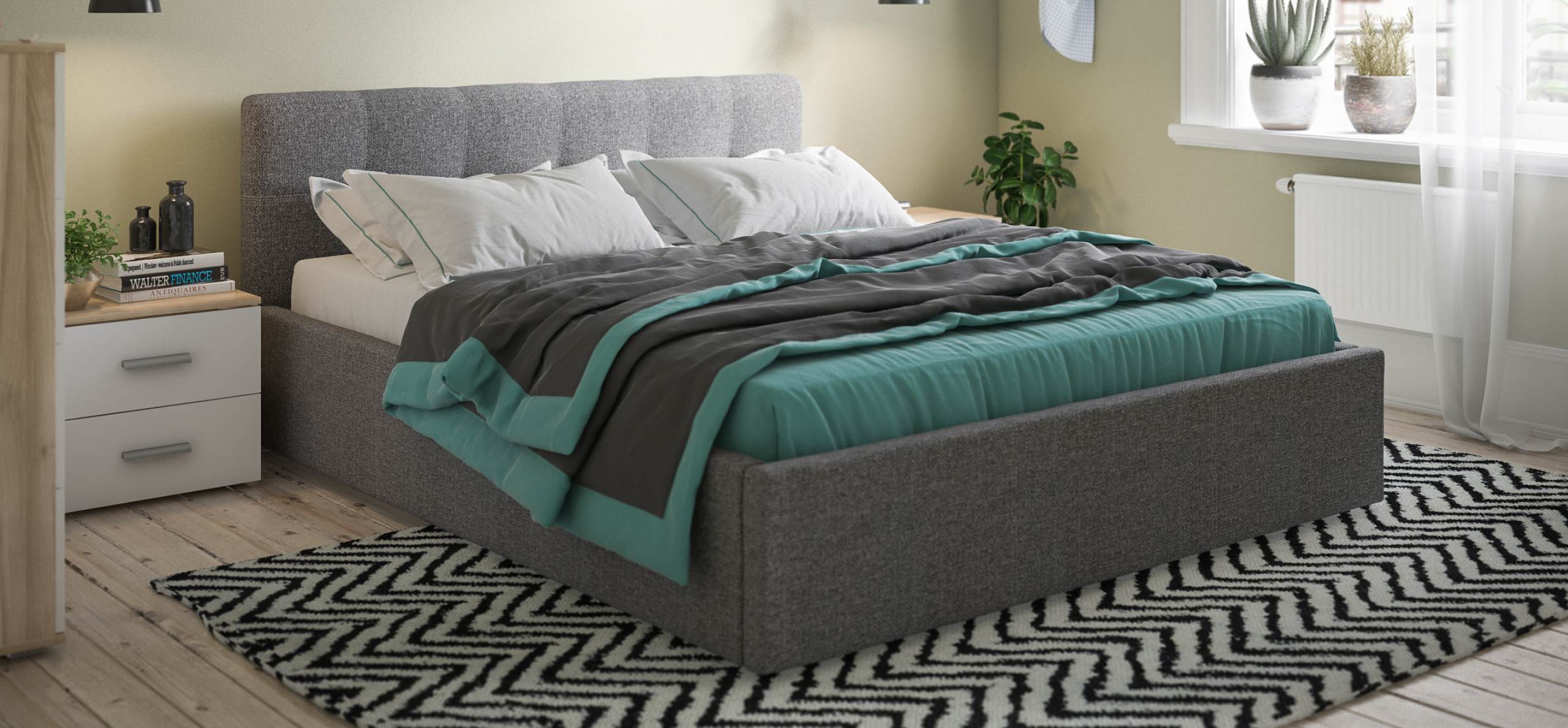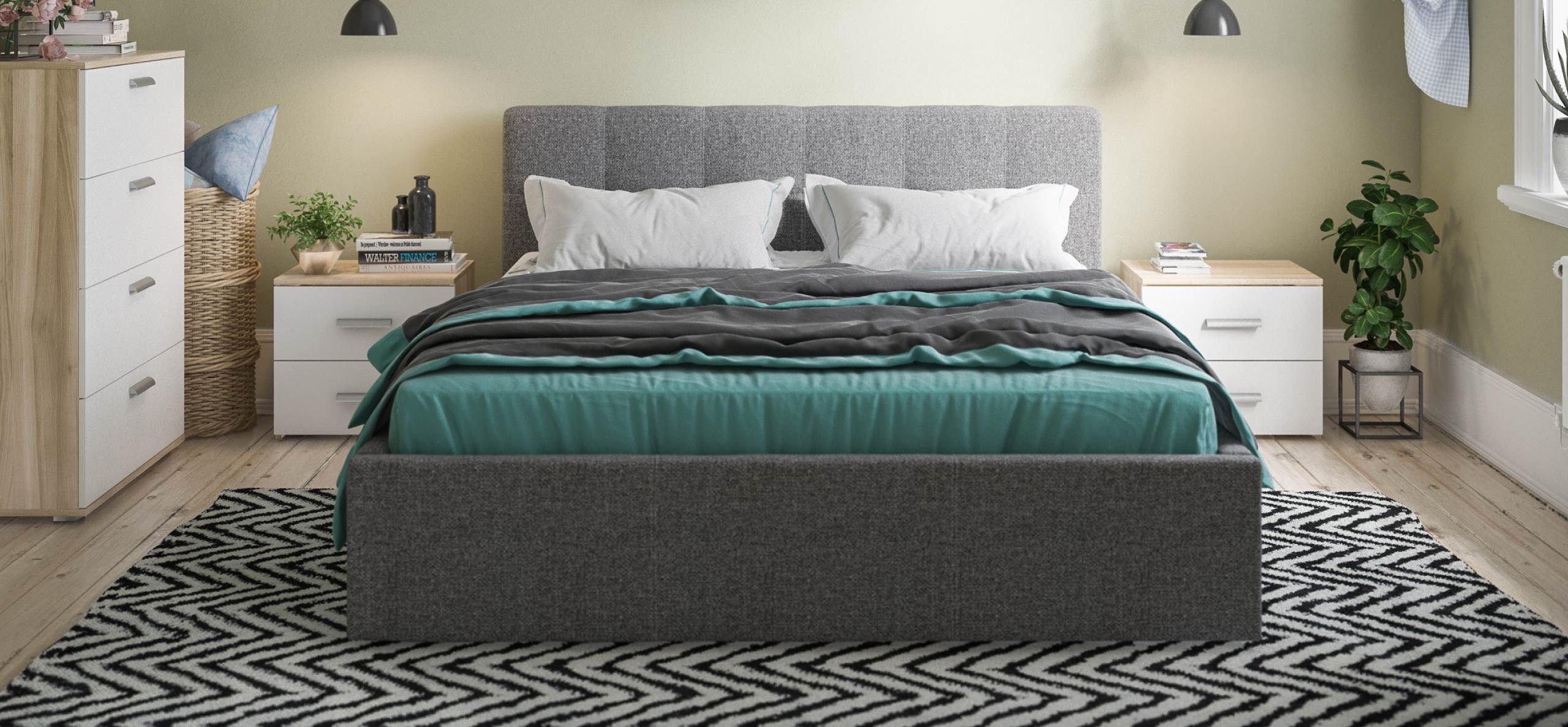 Кровать расположена на уровне пола, что предотвращает накопление пыли под основанием, облегчая уборку и поддерживая гигиену в спальне.