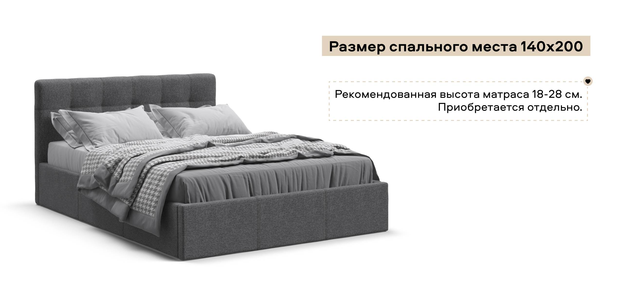 Белла Кровать без ПМ 140*200 Рогожка Мальмо серый