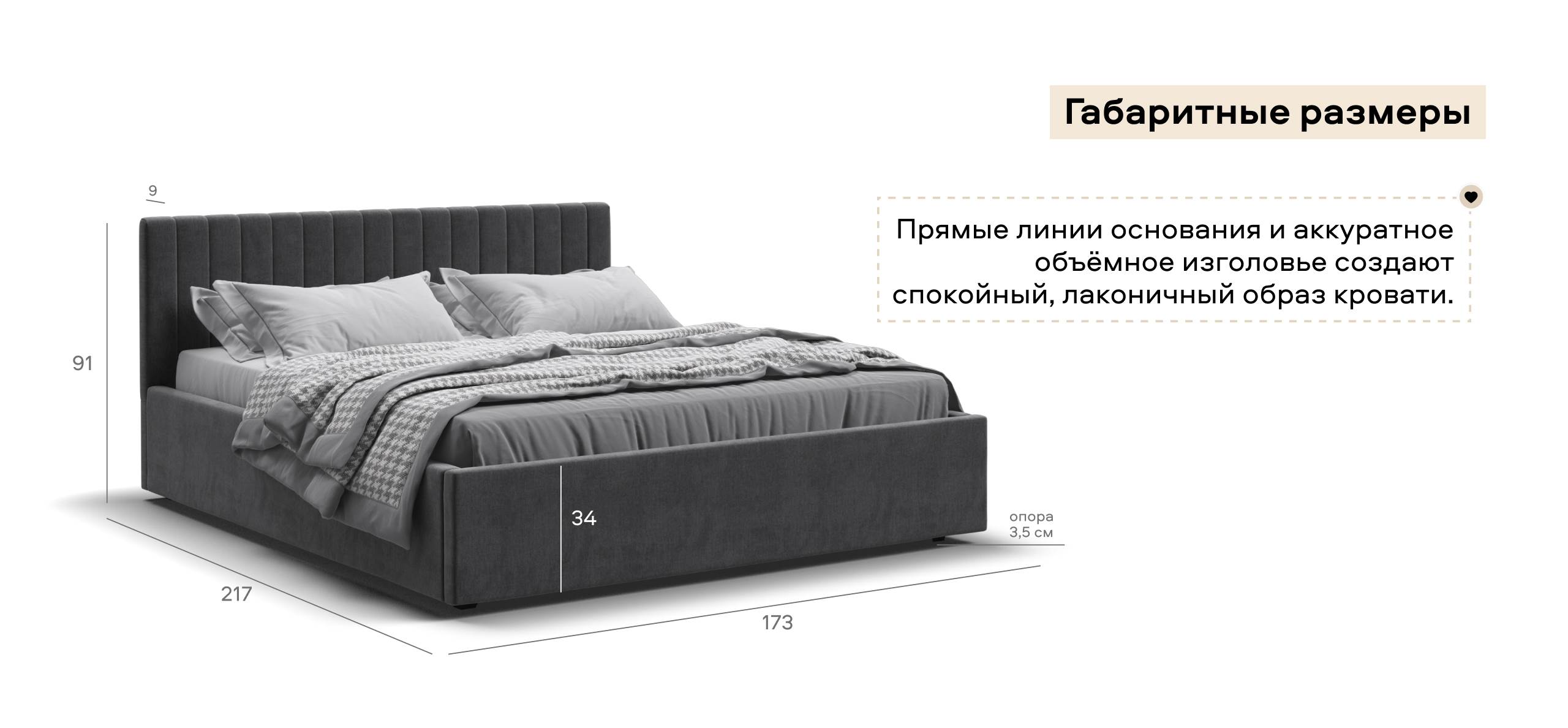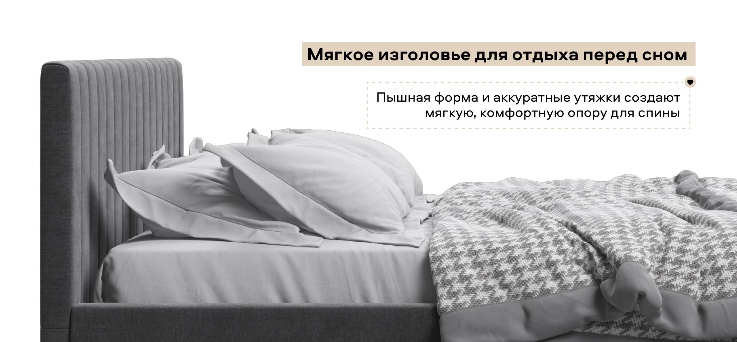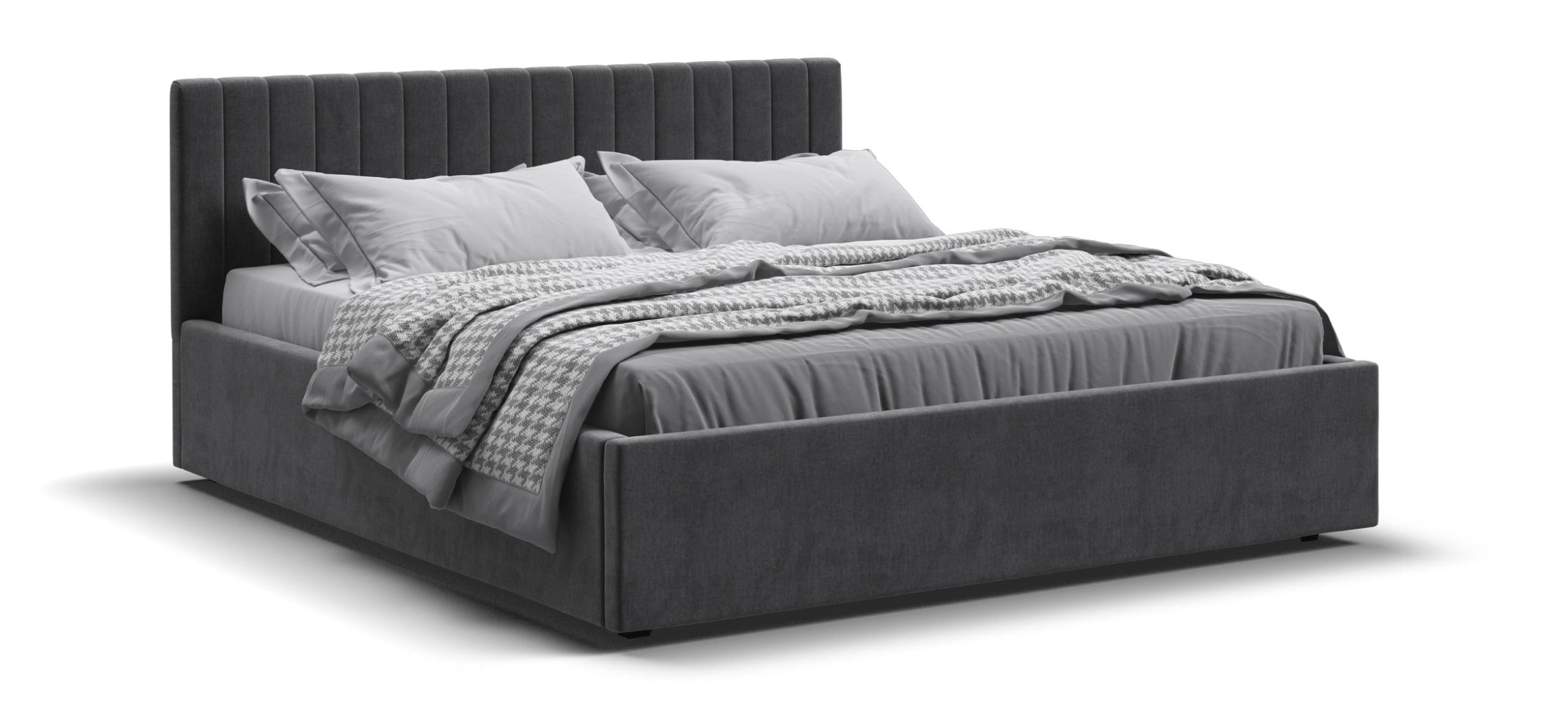 Ронда Кровать+ПМ 160*200 велюр Монолит серый